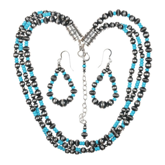 • 24" Vintage Zuni fine Snake Eye turquoise necklace and earrings set BKW