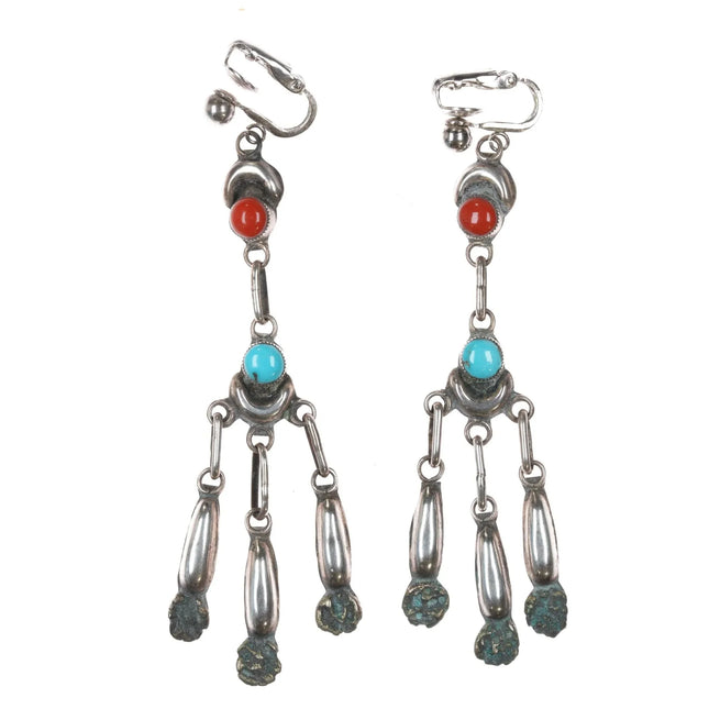 long vintage Zuni sterling silver snake eye turquoise chandelier earrings