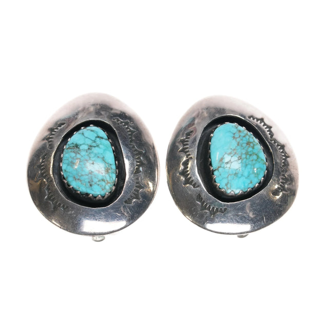 Vintage Navajo sterling silver high grade turquoise clip-on earrings