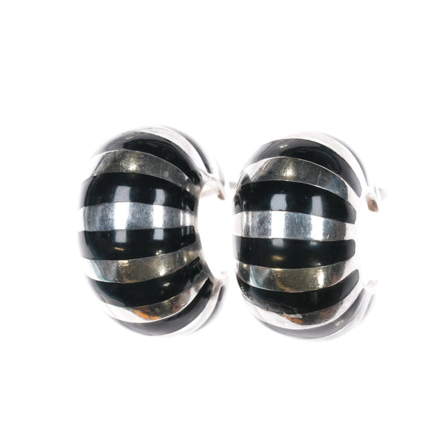 Bernard Dawahoya Hopi overlay vintage sterling silver clip-on earrings