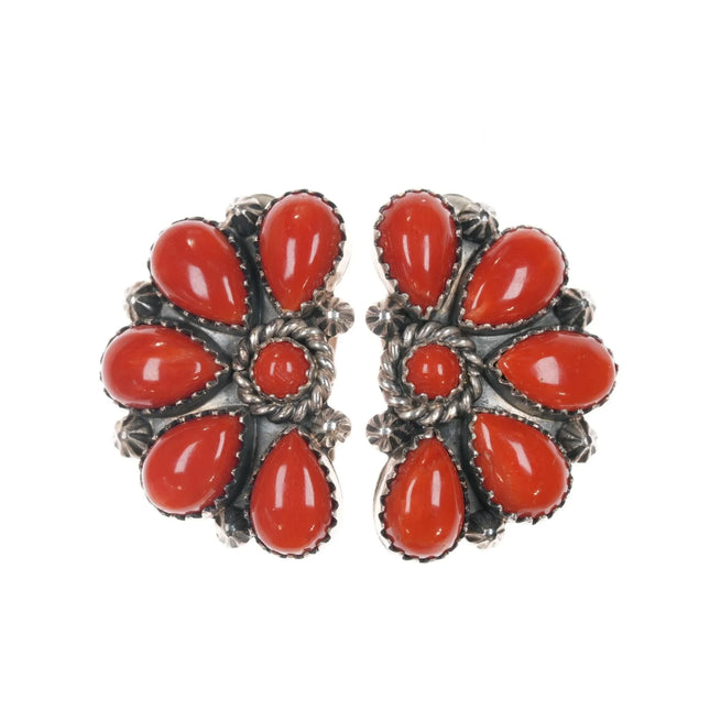 • Navajo, Zuni, Barse, Siam Sterling silver, turquoise, coral clip-on earrings - Estate Fresh Austin