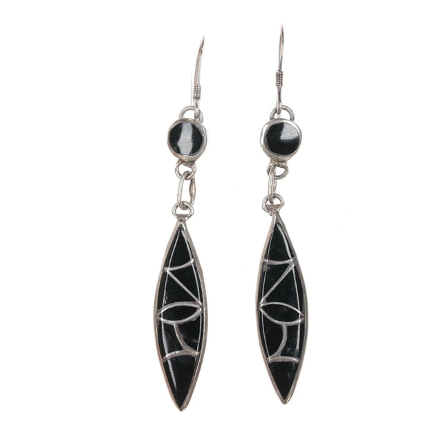 • Gary and Elsie Yoyokie Hopi Overlay dancer earrings sterling silver
