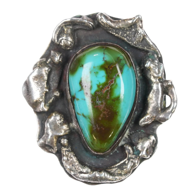 sz4.5 c1940's Navajo Curio Sterling and turquoise ring 20mm face, 5.8 grams. All precious metals are tested and guaranteed,