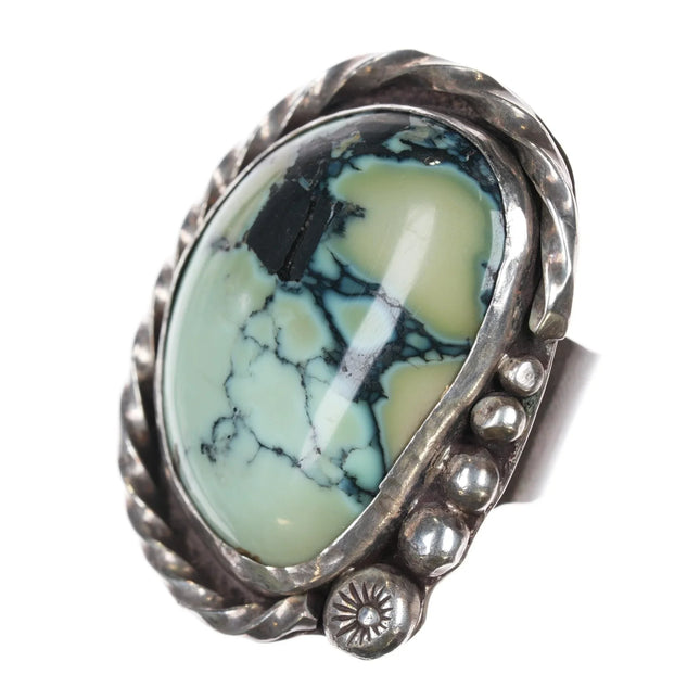 sz5 1940's Navajo Royston turquoise hand stamped sterling silver ring