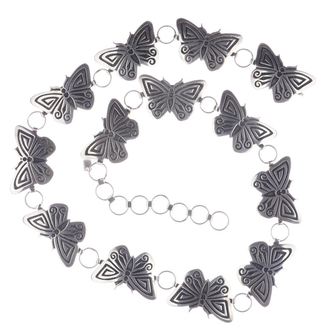 38" RJ Vintage Navajo nicely stamped sterling silver butterfly concho belt