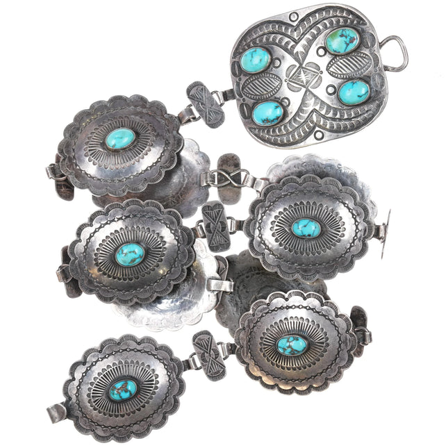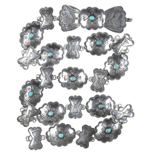 c1940 Large/Heavy Navajo hand stamped sterling silver link concho belt turquoise