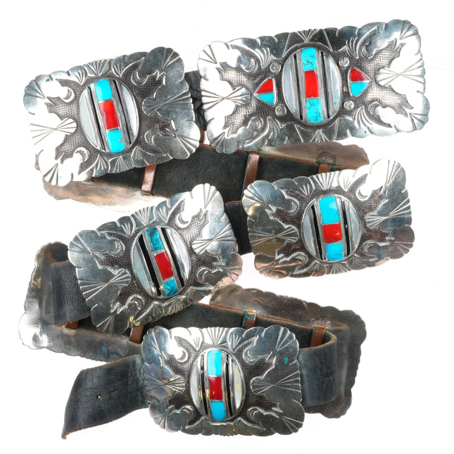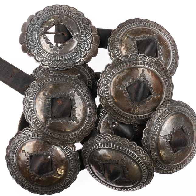 c1940's Navajo Sterling silver Heavy stamped Repousse concho belt