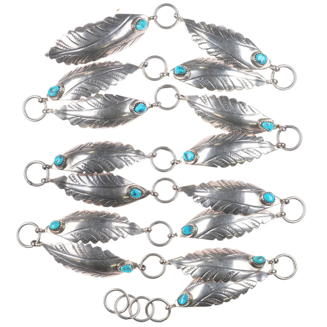 35.5" 40's-50's Vintage Navajo sterling silver link concho belt with turquoise
