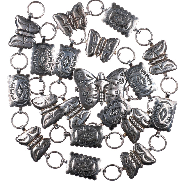 20's-30's Navajo sterling silver butterfly concho belt intricately stamped