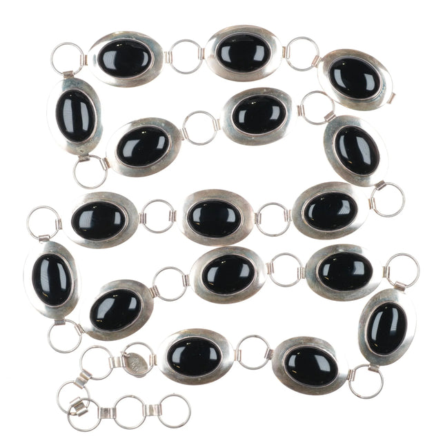 Large Lester Ortiz Navajo sterling silver onyx deep stamped concho belt
