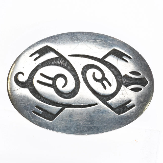 Hopi Pueblo artist Preston Monongye hallmark signature."Preston Monongye‘s jewelry is among the most sought after and highly valued of all Native American jewelry, rivaled only by his neighbor Charles Loloma, Lee Yazzie, and a small circle of other top artists.