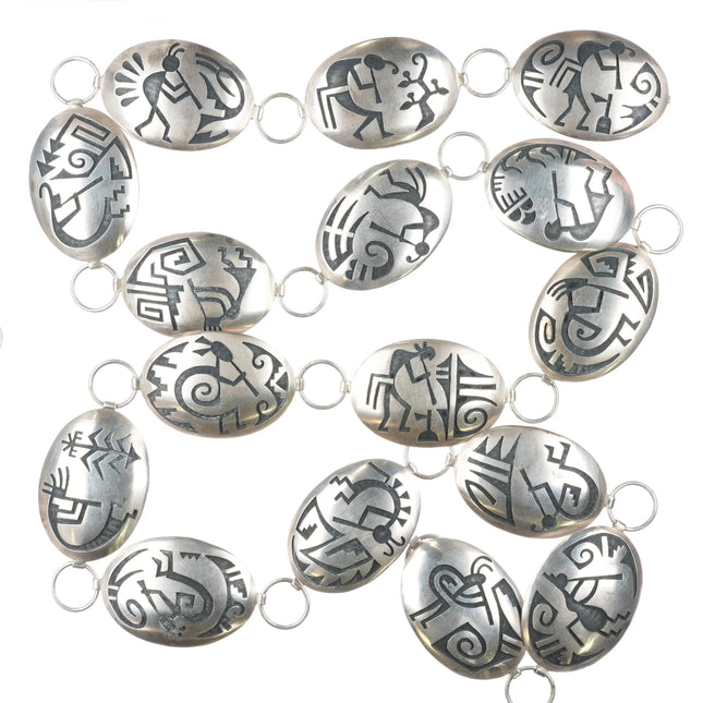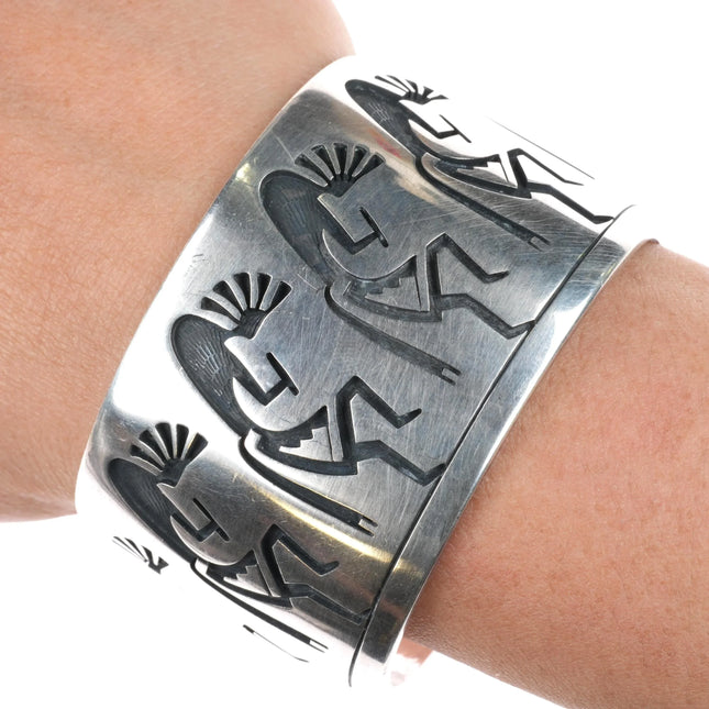 "As a child, Katsinas gave little Preston a bow, arrows, and a lightning stick, like other Hopi boys. Preston was initiated into the Hopi Katsina Society. While sitting in Grandfather David‘s kiva, he learned to carve and weave by watching Hopi priests. Preston was nine when he helped Grandfather David melt silver coins to make jewelry. He learned traditional techniques of Hopi silversmiths practiced by David and their neighbors, Ralph Tawangyawma, Dan Katchongva, and Allen Pooyouma. They were known for silver ingot, hand wrought, heavy stampwork and twist wire jewelry set with high quality, natural turquoise.