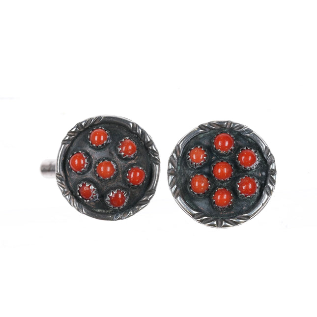 Vintage Zuni snake eye coral sterling silver cufflinks