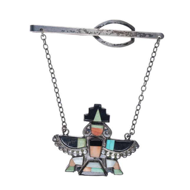 c1950 Zuni Knifewing sterling silver inlay tie bar/pin clip