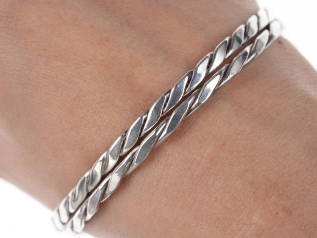 2 Vintage Southwestern Twisted Rope Armreifen aus Sterlingsilber