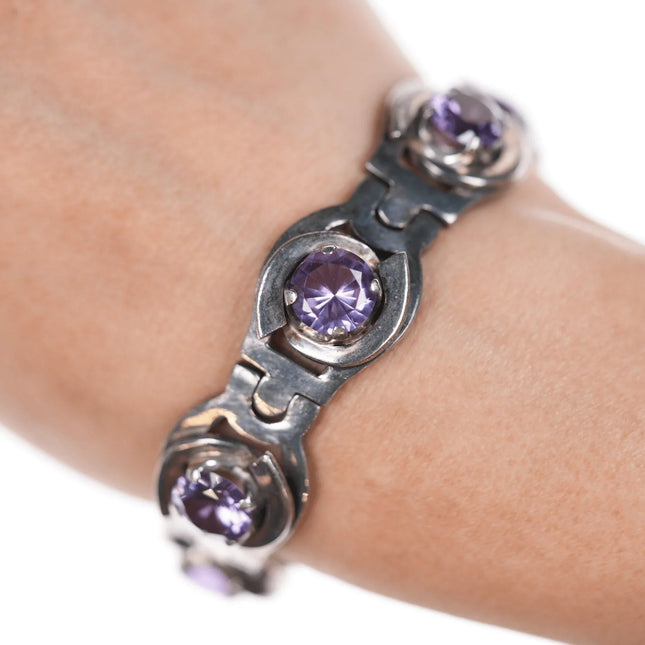 6.5" Retro Mexican sterling silver art glass modernist link bracelet