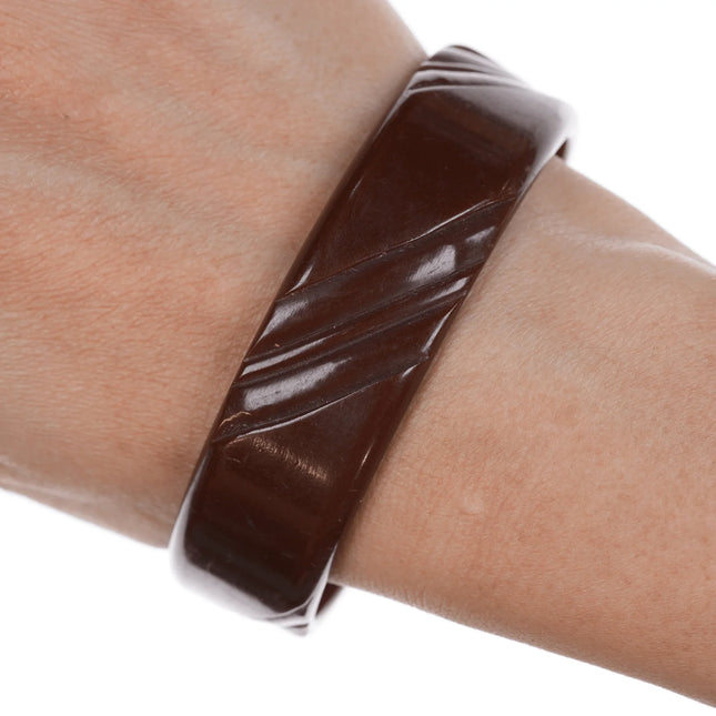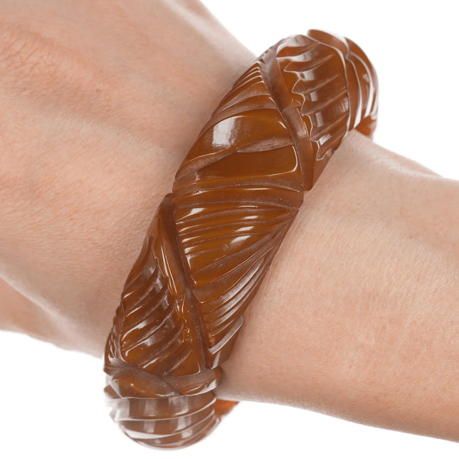 8" c1940's Carved Bakelite Bangle bracelet Butterscotch