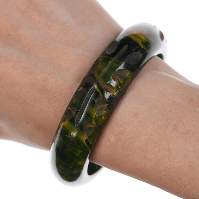 8" c1940's Carved Green marlbelized Bakelite bangle bracelet