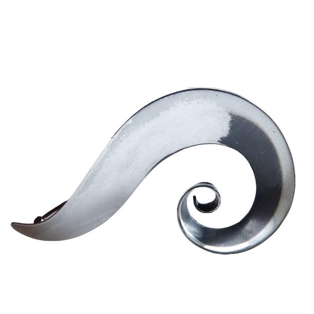 1960er Jahre Orb Mid Century Modern Brosche Otto Robert Bade 3" breit ohne Biegungen oder Dellen.Otto R. BadeEin autodidaktischer Silberschmied, dessen Wurzeln auf einer Farm in Nebraska liegen. Otto, der zu Besuch war Als sein Großvater 1940 die Weltausstellung besuchte, wurde ihm klar, dass er nicht das Leben eines Landwirts verfolgen wollte, und so ging er 1941 nach New York, um seine Zukunft zu entdecken. Er antwortete nur auf eine Stellenanzeige und erschien zum Vorstellungsgespräch. Frank (Francisco) Rebajes erklärte, dass er jemanden suche, der seine Studio-Kunstwerke übernimmt und die Produktionskapazität erhöht. Er sagte zu Otto: „Sehen Sie, was Sie tun können“ und überreichte Otto eines seiner Lieblingsstücke, das „Ubangi-Gesicht“. Am Ende des Tages war Frank erstaunt. Otto hatte einige Vorrichtungen und ein Verfahren zur Massenproduktion von Franks Kunstwerken entwickelt. Otto fertigte an nur einem Tag einhundert perfekt geformte Ubangi-Gesichtsnadeln an. Frank wusste damals, dass sein Traum darin bestand, tragbare Kunst für die Menschen zu schaffen Massen würden nun realisiert werden.Frank Rebajes galt als der erste Meister in der Kunst des Kupferschmucks und des Kupferhandwerks und Otto war der Vorarbeiter, der dafür sorgte, dass die Entwürfe kunstvoll und meisterhaft hergestellt wurden. Noch wichtiger ist, dass Frank und Otto eine Freundschaft genossen, die ein Leben lang halten sollte.Rebajes Wearable Art war in den 1940er und 50er Jahren einer der führenden Schmuckhersteller mit Hunderten von Top-Läden im ganzen Land, die diese Linie führten. Otto, der mittlerweile über jahrzehntelange Silberschmiedekenntnisse verfügt, verließ das Unternehmen und gründete 1958 mit großem Erfolg sein eigenes Unternehmen „Orb Originals“. Frank verkaufte den Namen und das Geschäft von Rebajes 1960 an Otto und zog nach Spanien, wo er sich wieder der Arbeit in kleinen Studios und seiner wissenschaftlichen Forschung zum „Mobius“ widmete.Als Ottos Unternehmen wuchs, fügte er die Werkstatt und die Maschinen hinzu und Katalogdesigns von Rebajes. Das Geschäft wuchs weiter und lief recht gut, bis Otto 1981 aufgehalten und schwer mit der Pistole ausgepeitscht wurde, sodass er sich in einem kritischen Zustand befand. Nach einer langen Genesung von den Verletzungen zogen Otto und seine Frau Dae nach New Hope, PA.Orb Silvermiths ist bis heute ein fester Bestandteil der Gemeinde von New Hope, PA. Otto, mittlerweile weit in den Neunzigern, trägt immer noch maßgeblich dazu bei, dass das Markenzeichen von Rebajes die Traditionen und die Handwerkskunst fortsetzt, die den Namen Rebajes über achtzig Jahre lang so berühmt und begehrt gemacht haben.