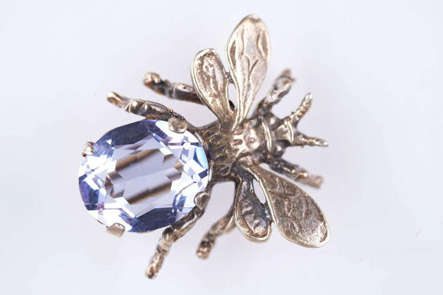 Guglielmo Cini (1903-1979) Sterling-Edelstein-Bienenbrosche. Toll aussehende Brosche ohne Probleme, ich habe den Stein nicht getestet, aber da er aus Sterlingsilber ist, glaube ich, dass es sich um einen Swarovski-Kristall in einer begehrten Farbe im Ruhestand handelt. Misst 1" x 7/8" ohne Probleme.
