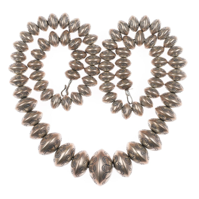 22.5" Vintage Roy Vandever Navajo sterling silver stamped Navajo pearls necklace . Solid sterling silver tested and guaranteed with weight and measurements in the pictures. No issues, circa last quarter of the 20th century. No apparent markings.