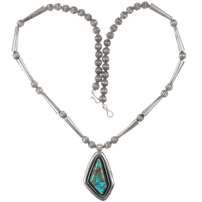 Daniel Benally Navajo sterling silver spiderweb turquoise necklace pendant. Circa fourth quarter of the 20th century, tested and guaranteed solid sterling silver. Very well made, no issues.