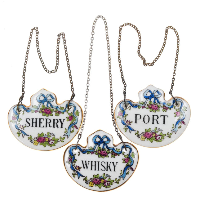 Crown Staffordshire porcelain Sherry Port Whiskey Liquor tags decanters bottles