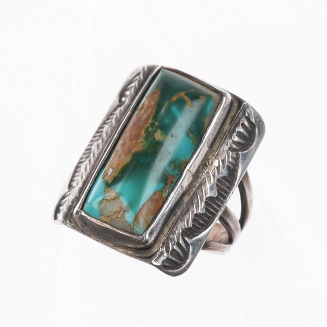 sz5 1940‘s Navajo Royston turquoise hand stamped sterling silver ring. Great looking ring from the second quarter of the 20th century with no issues. Unmarked, tested and guaranteed solid sterling silver with weight and measurements in the pictures.