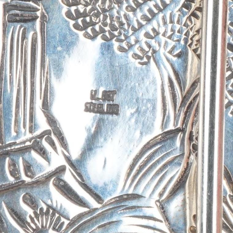1.25" Lloyd Becenti Navajo Horses sterling silver belt buckle with turquoise. Solid sterling silver (tested) with weight and measurements in... Lesen Sie mehr