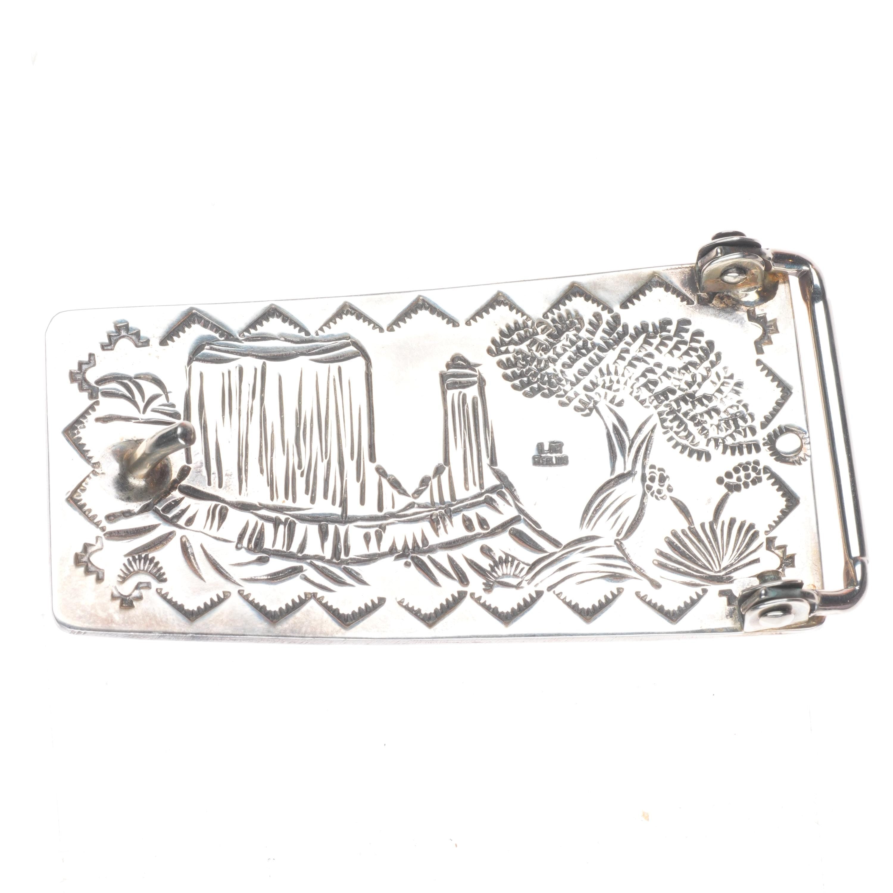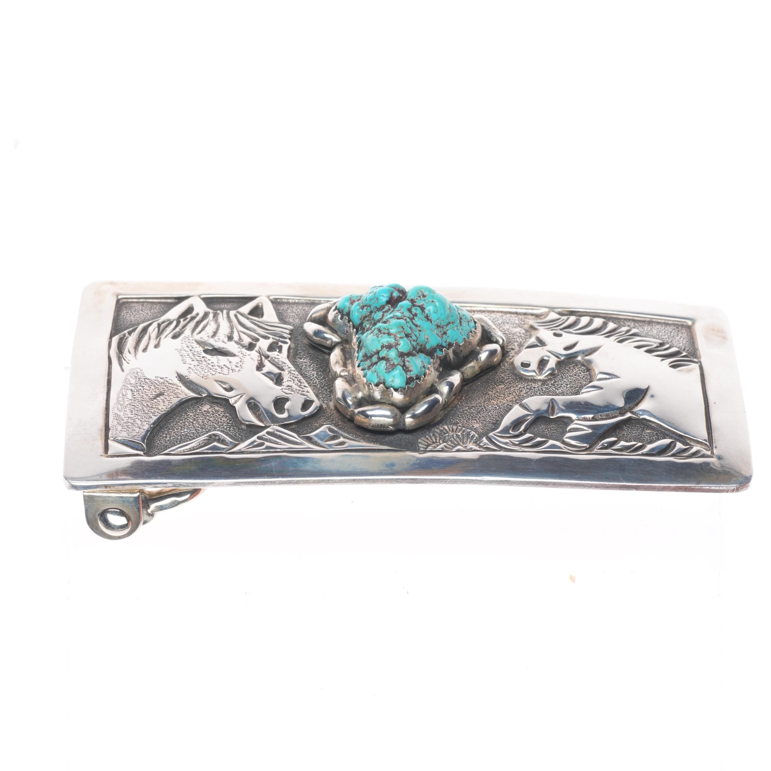 1.25" Lloyd Becenti Navajo Horses sterling silver belt buckle with turquoise