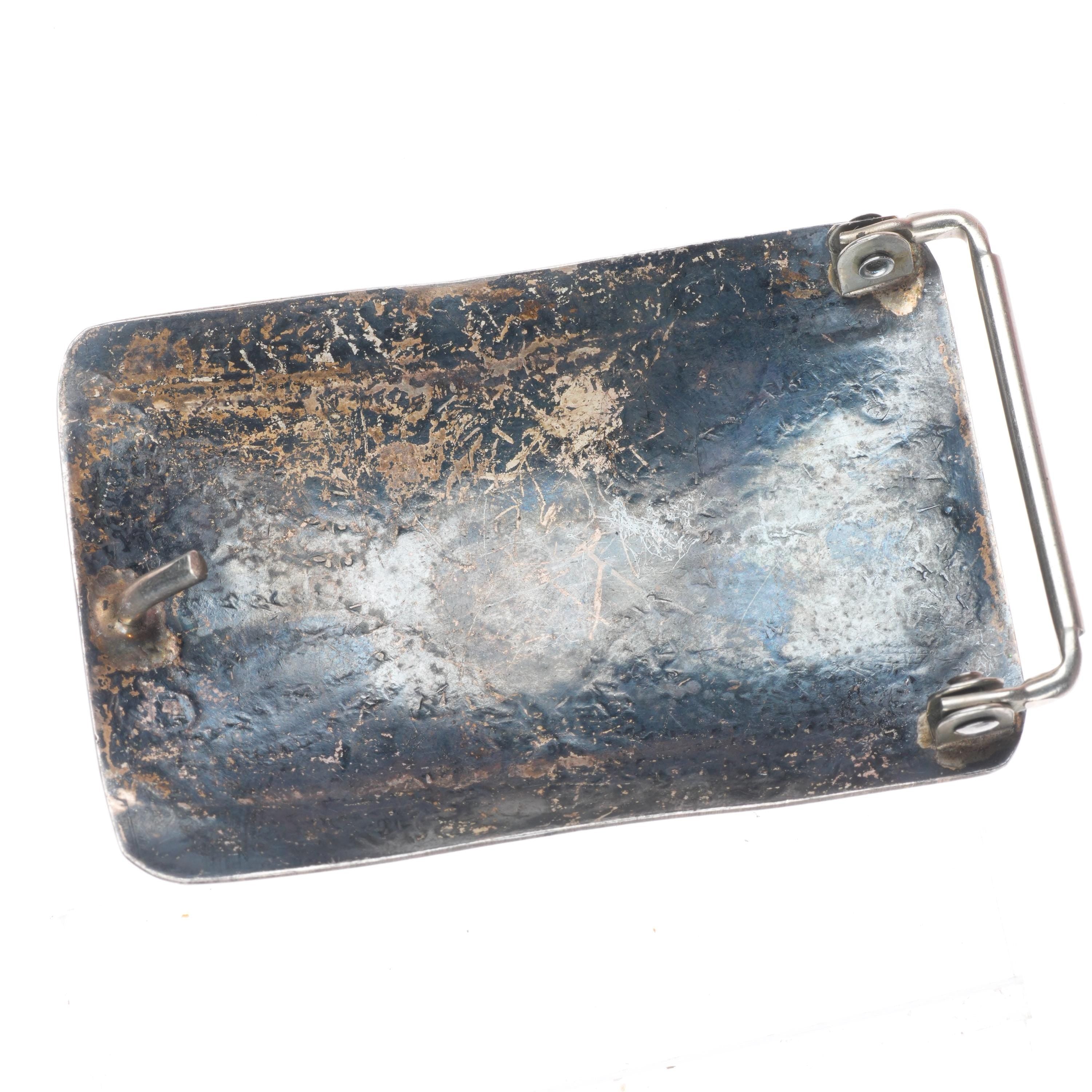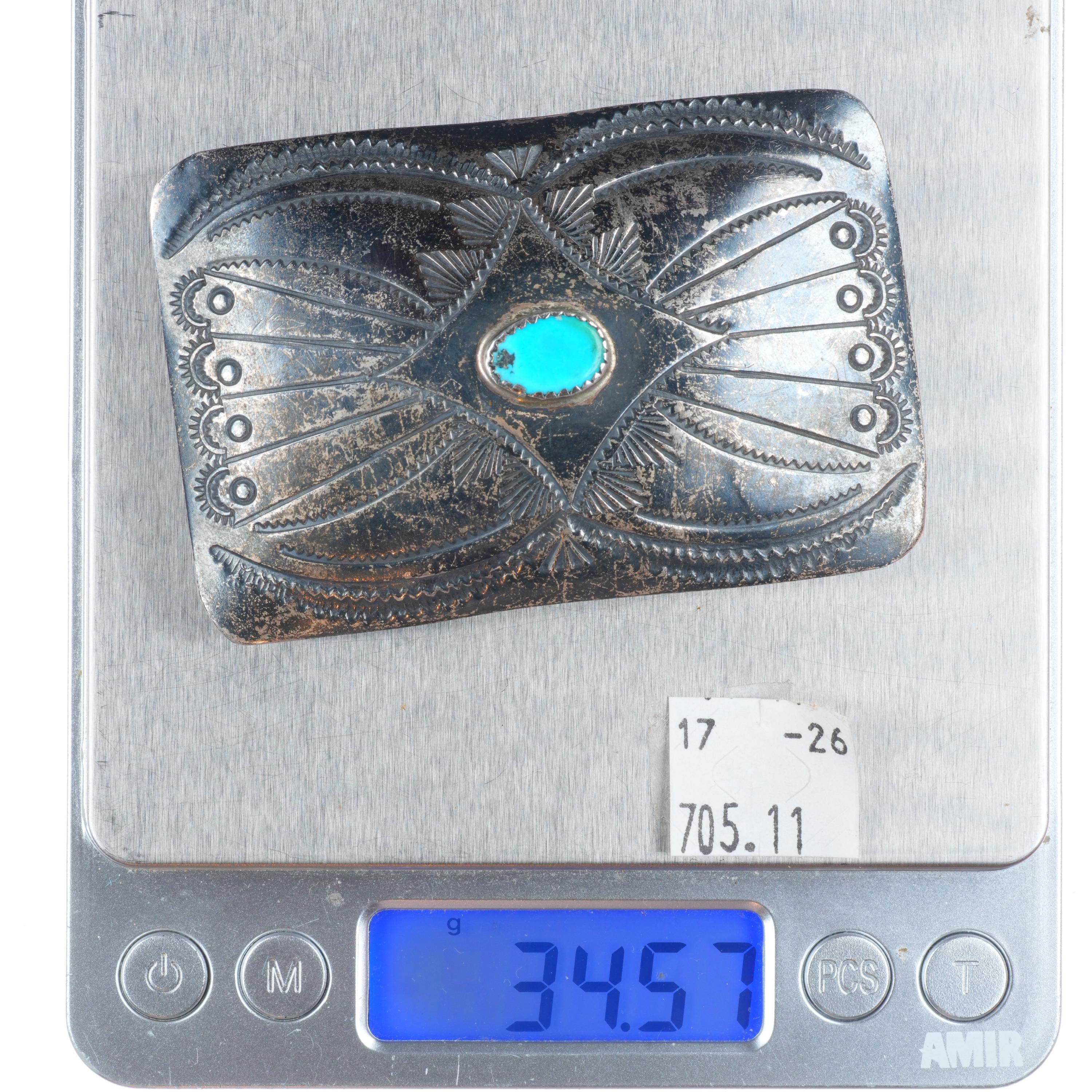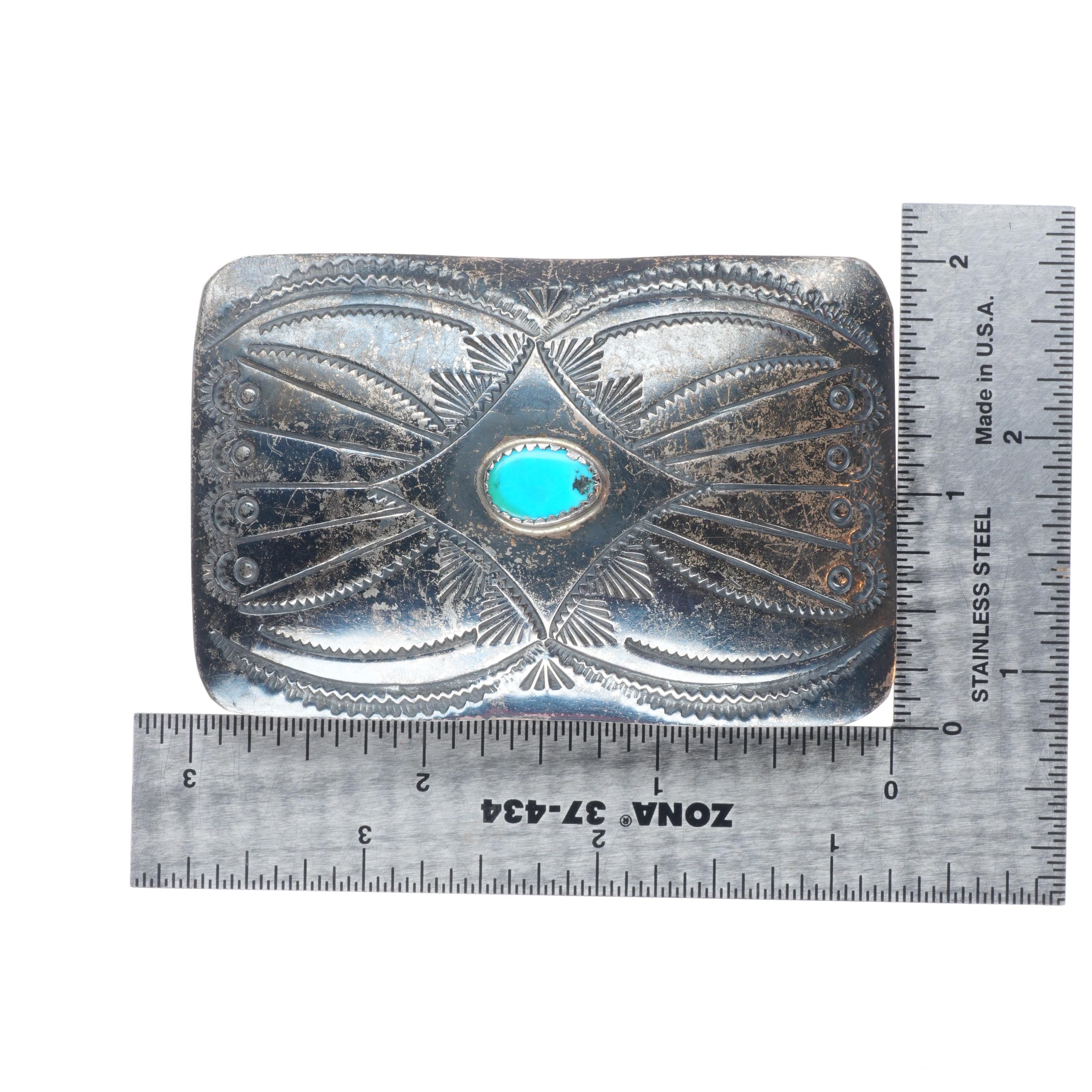 1.5" Vintage Navajo sterling silver stamped belt buckle with turquoise