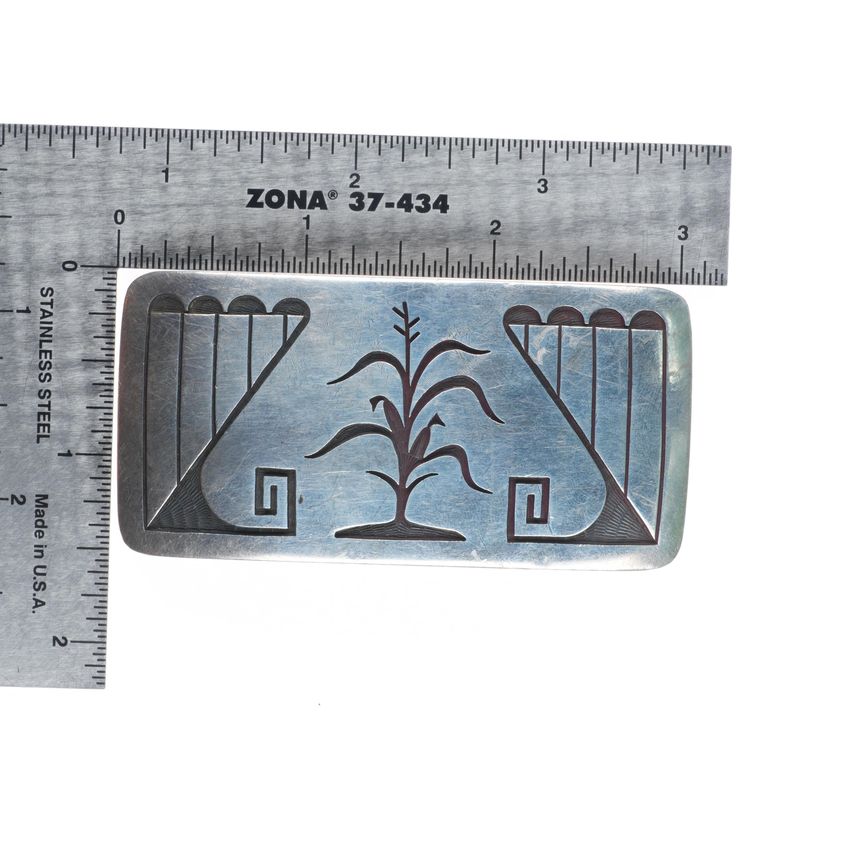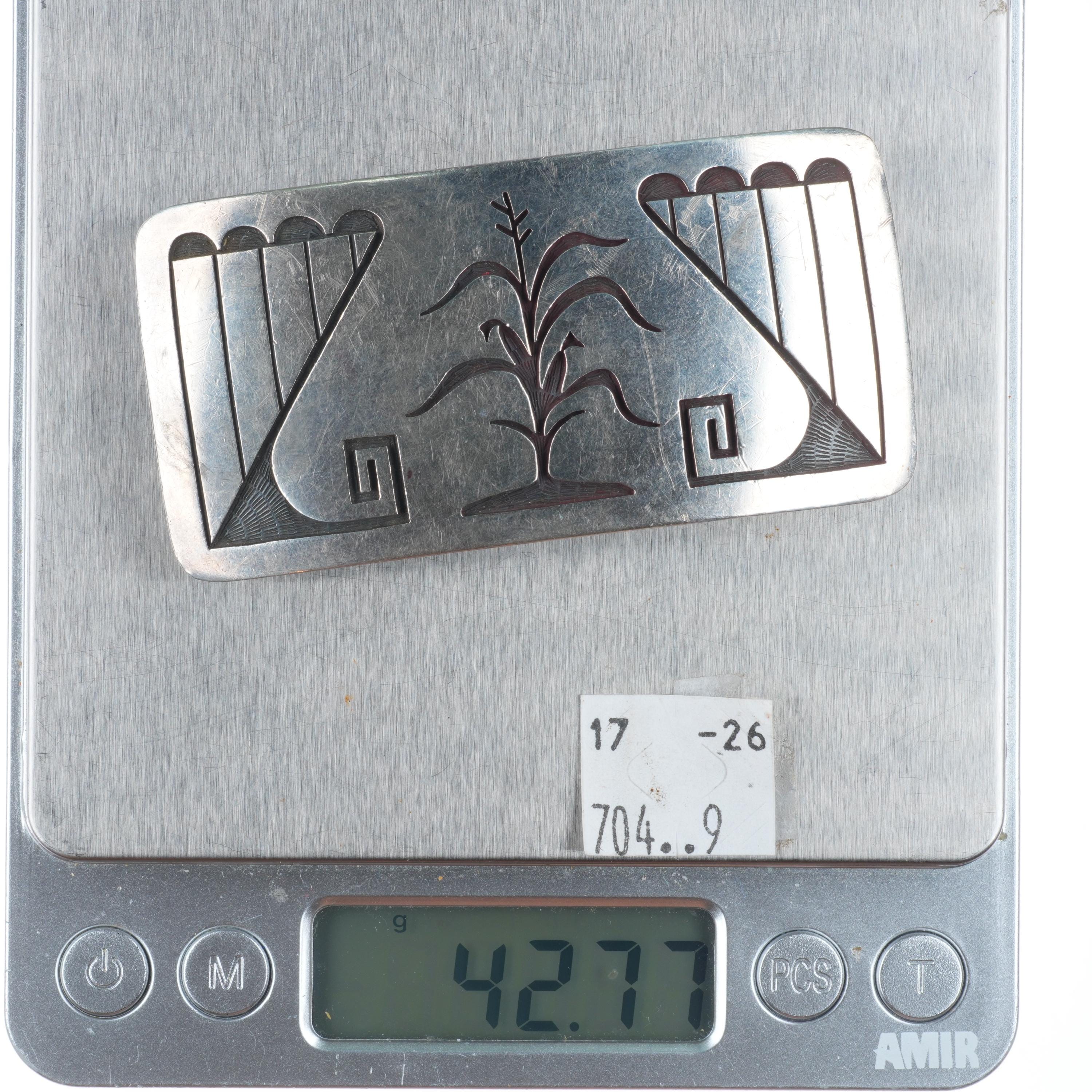 1" Emery Holmes Hopi overlay Hopicrafts sterling silver corn belt buckle