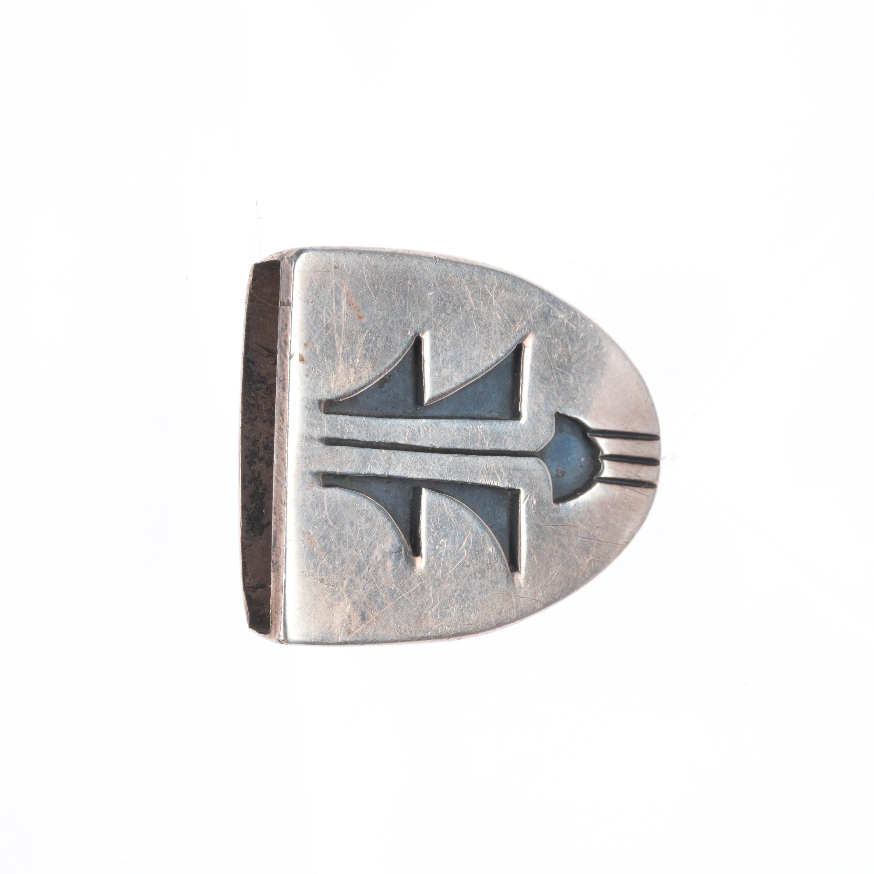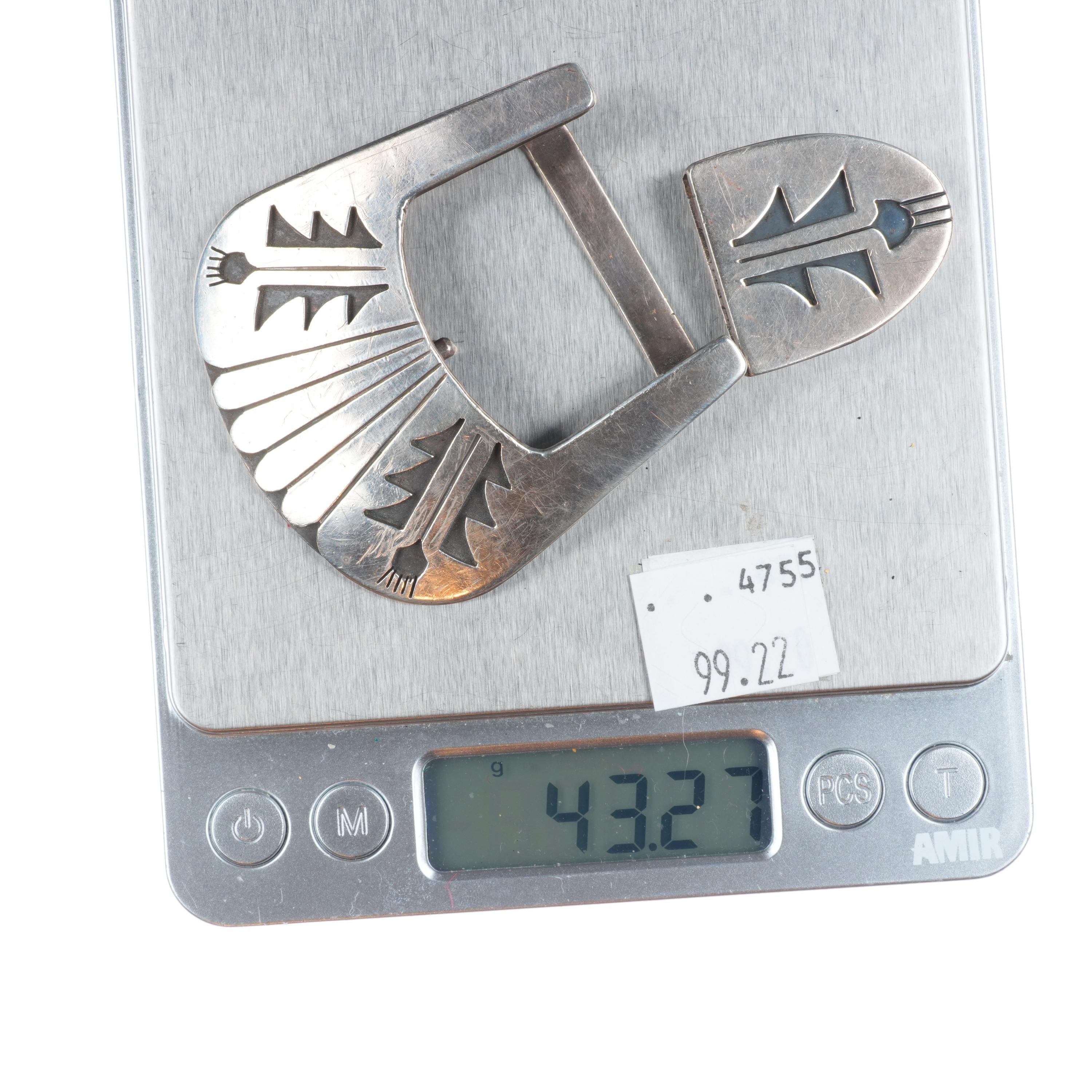 1950‘s Richard Kagenvema Hopi guild 1" ranger belt buckle/tip sterling silver. Solid sterling silver (tested) with weight and measurements in pictures.. Fits a 1" belt. No issues, some expected wear. Ranger belts are typically wider and taper down to 1" where the buckle and tip go on.