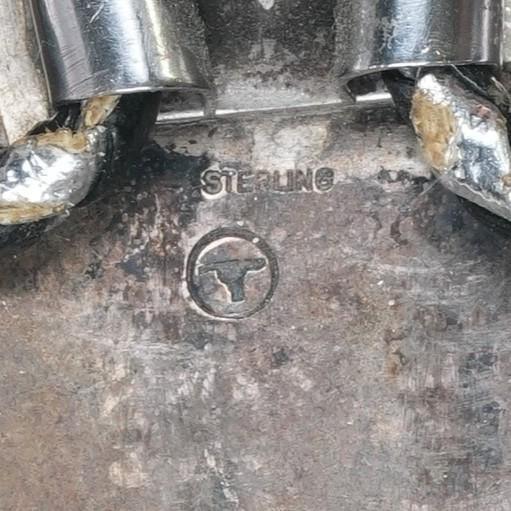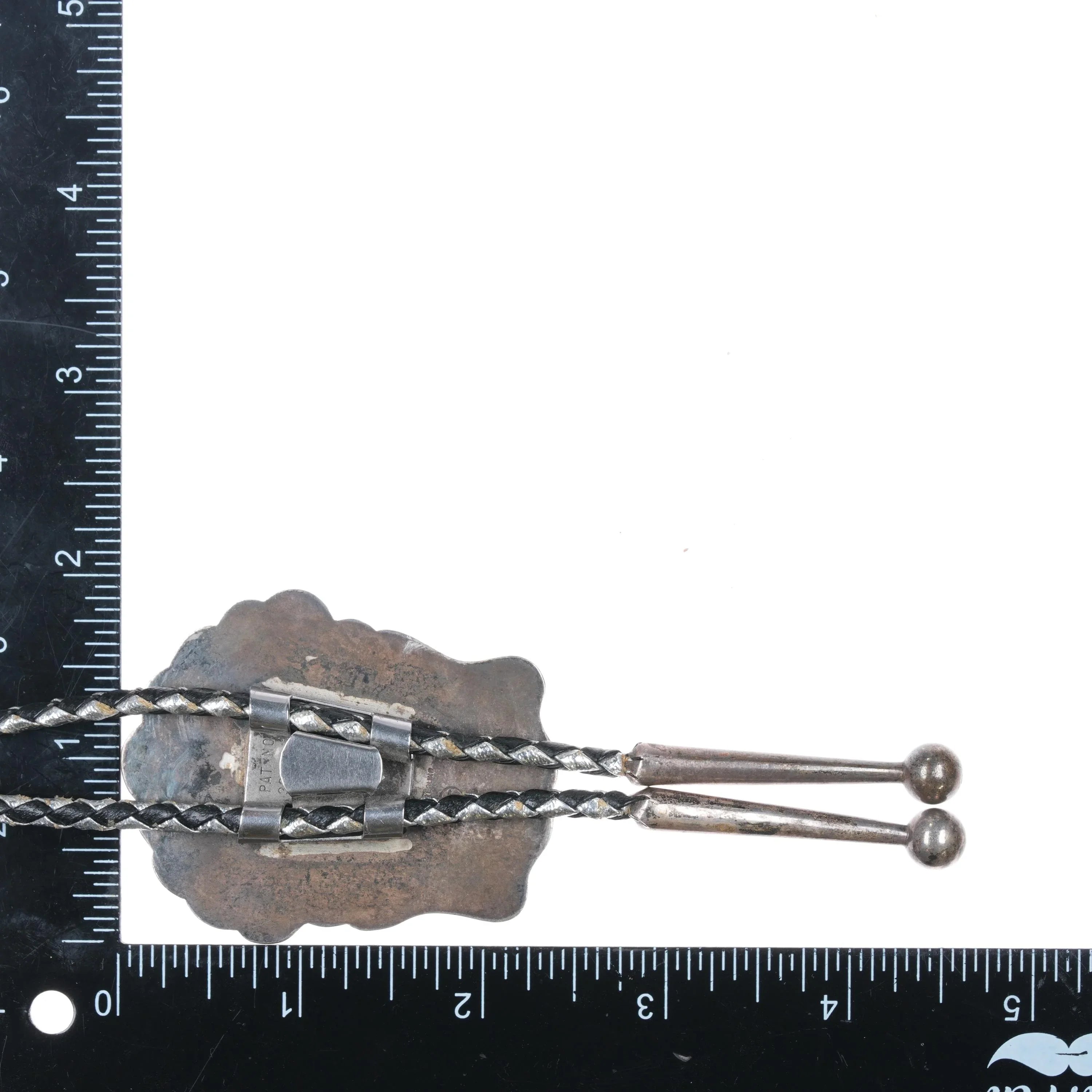 1970‘s T Sterling silver jasper bolo tie with cool cord. Solid sterling silver slide and tips. Weight and measurements in pics. 35" long. Expected wear with no apparent damage. Weight shown is just the entire bolo, if there is a tray pictured it will be tared out of course. Marked as shown, unidentified.