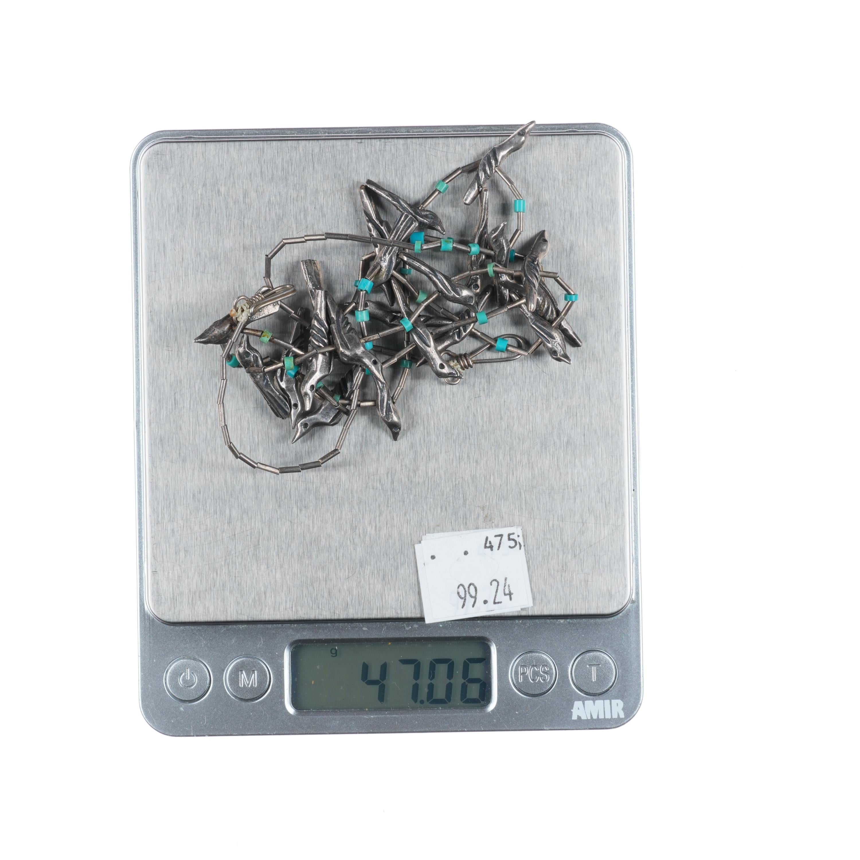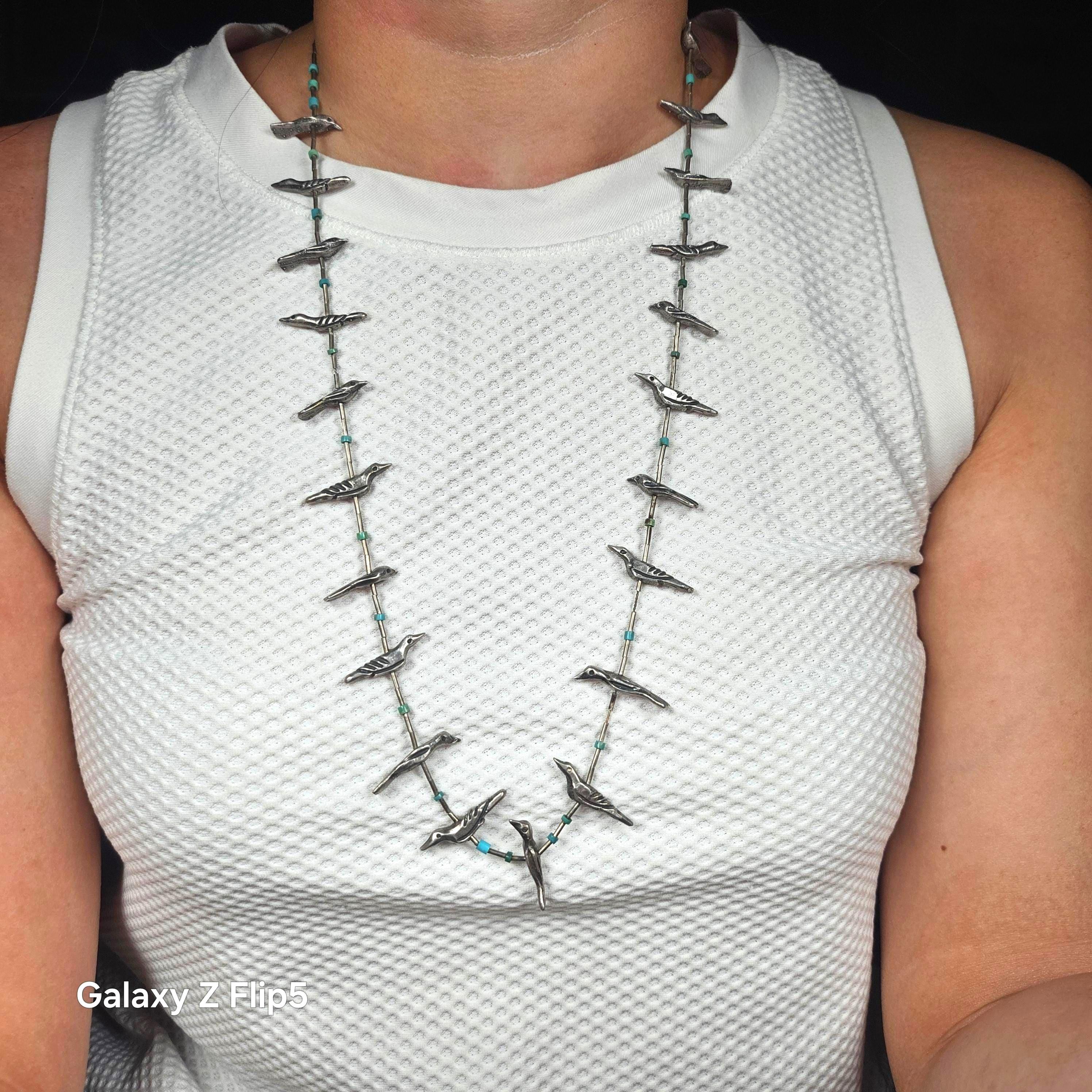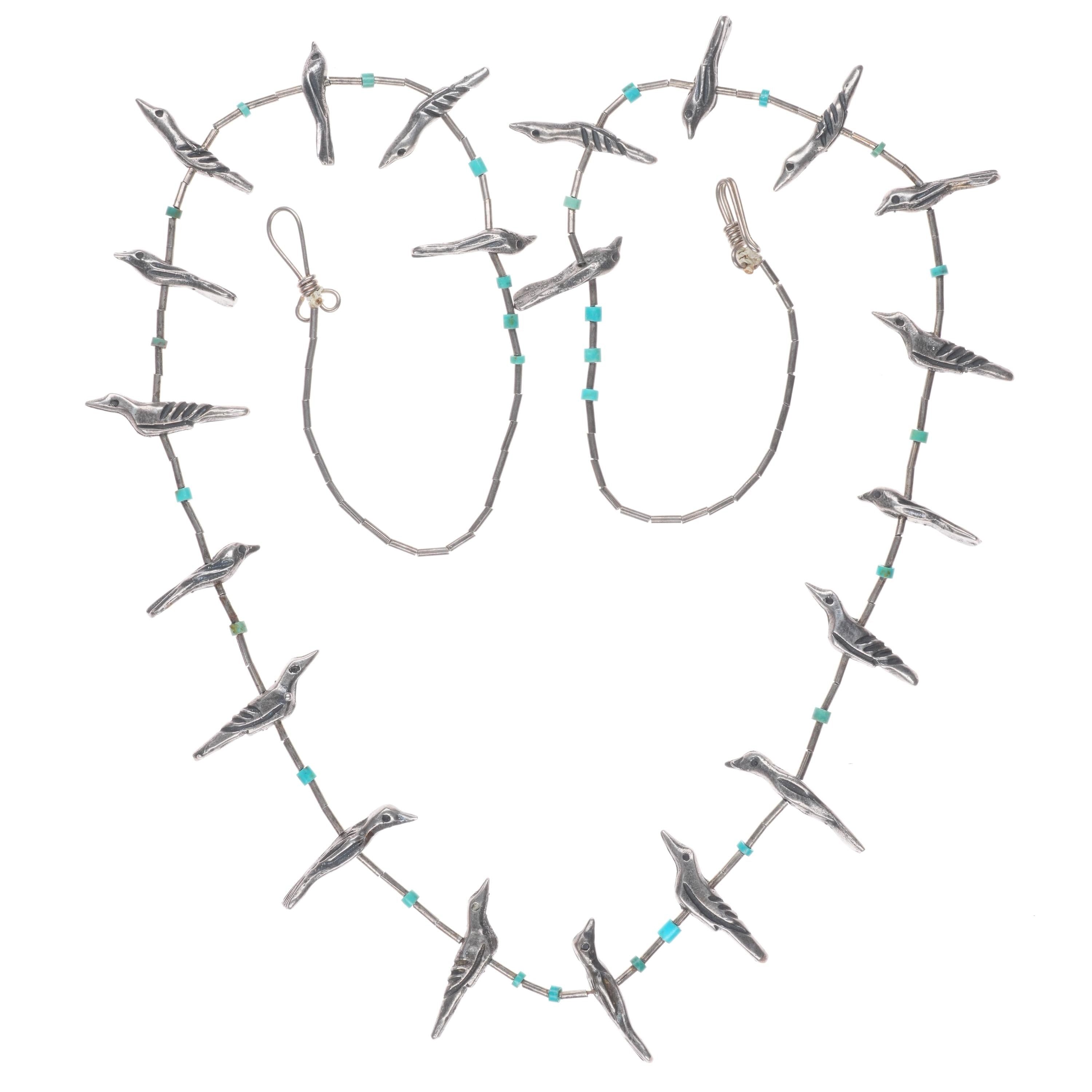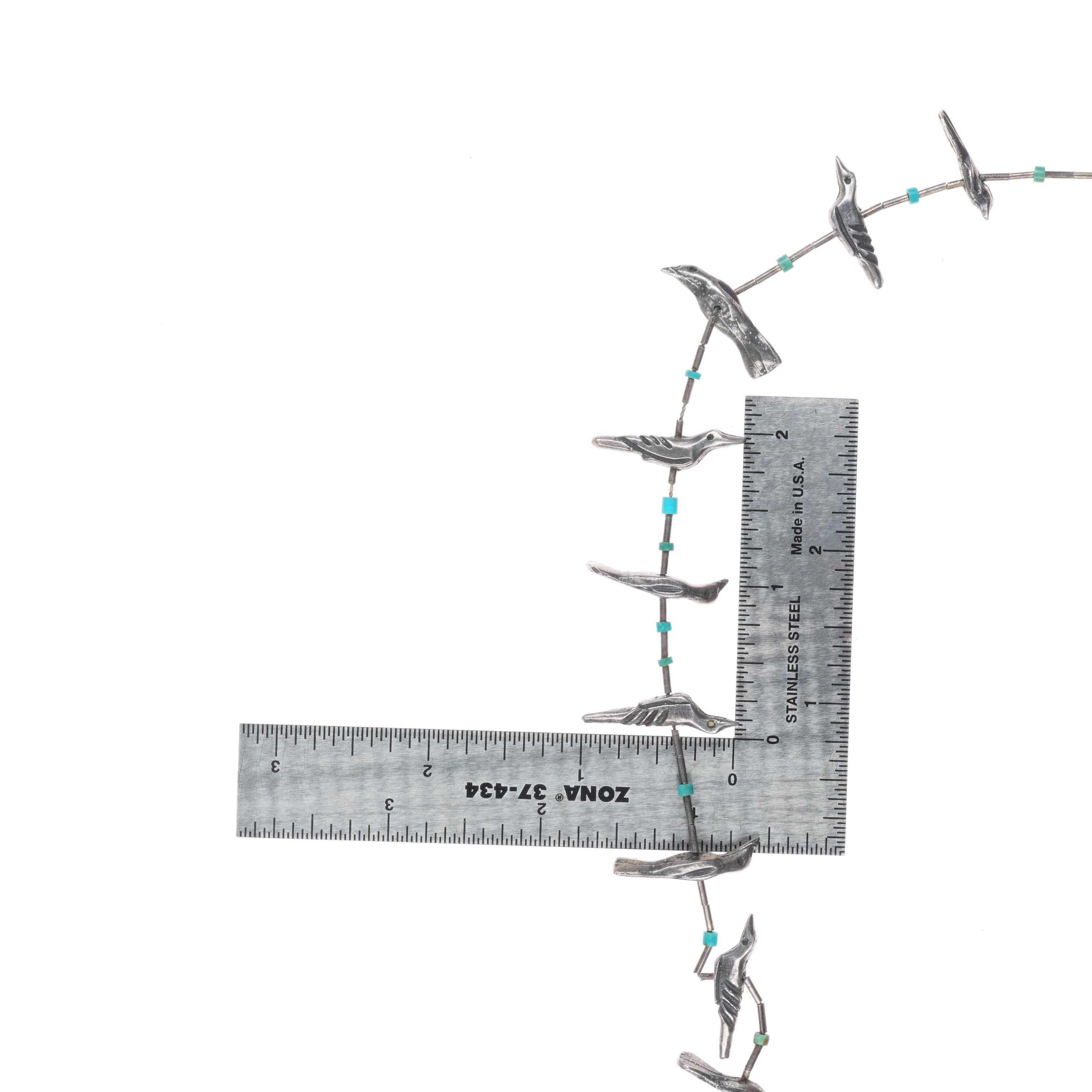 27" Vintage Native American sterling silver bird necklace turquoise heishi beads
