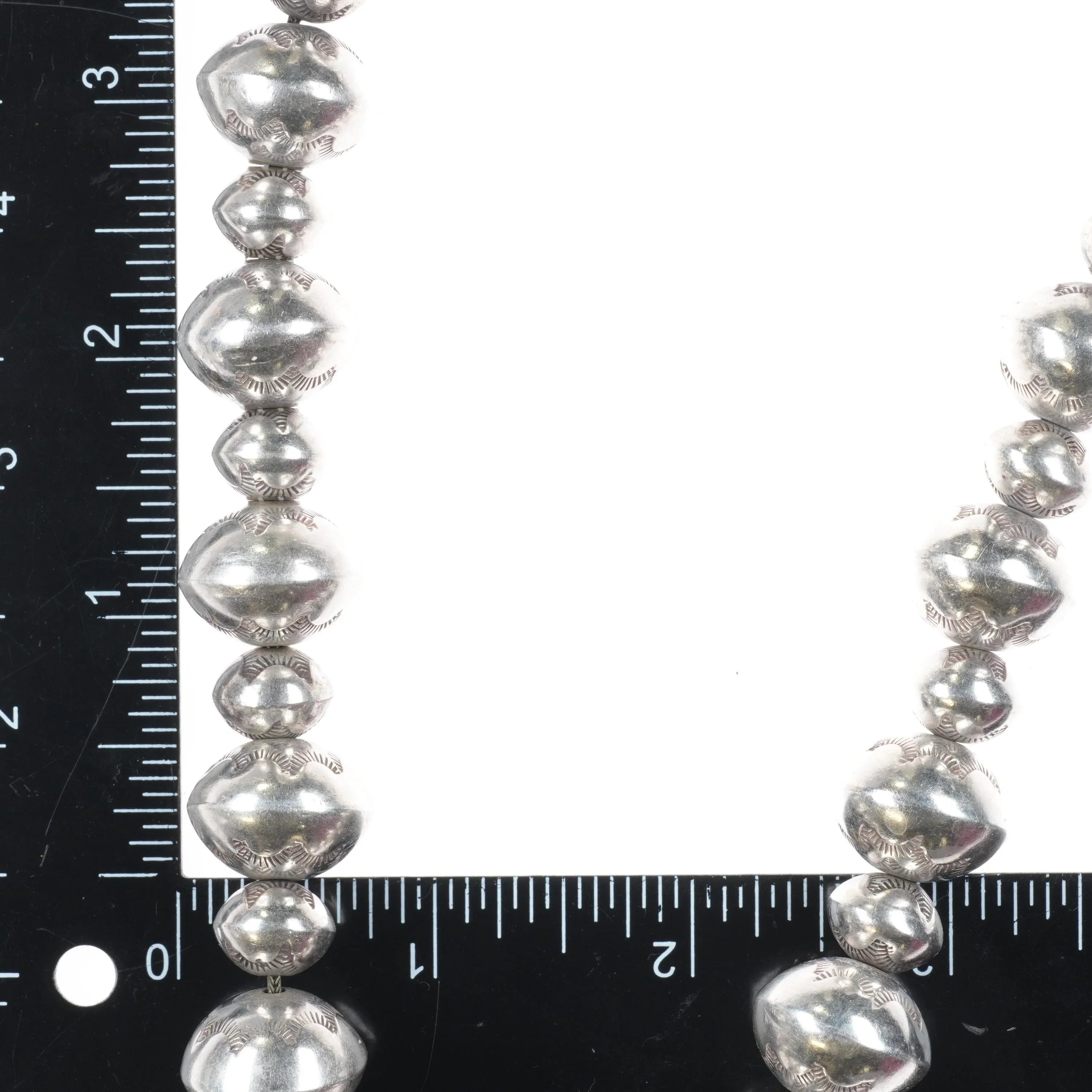 29" Large Navajo Pearls hand stamped sterling silver graduated beaded necklace