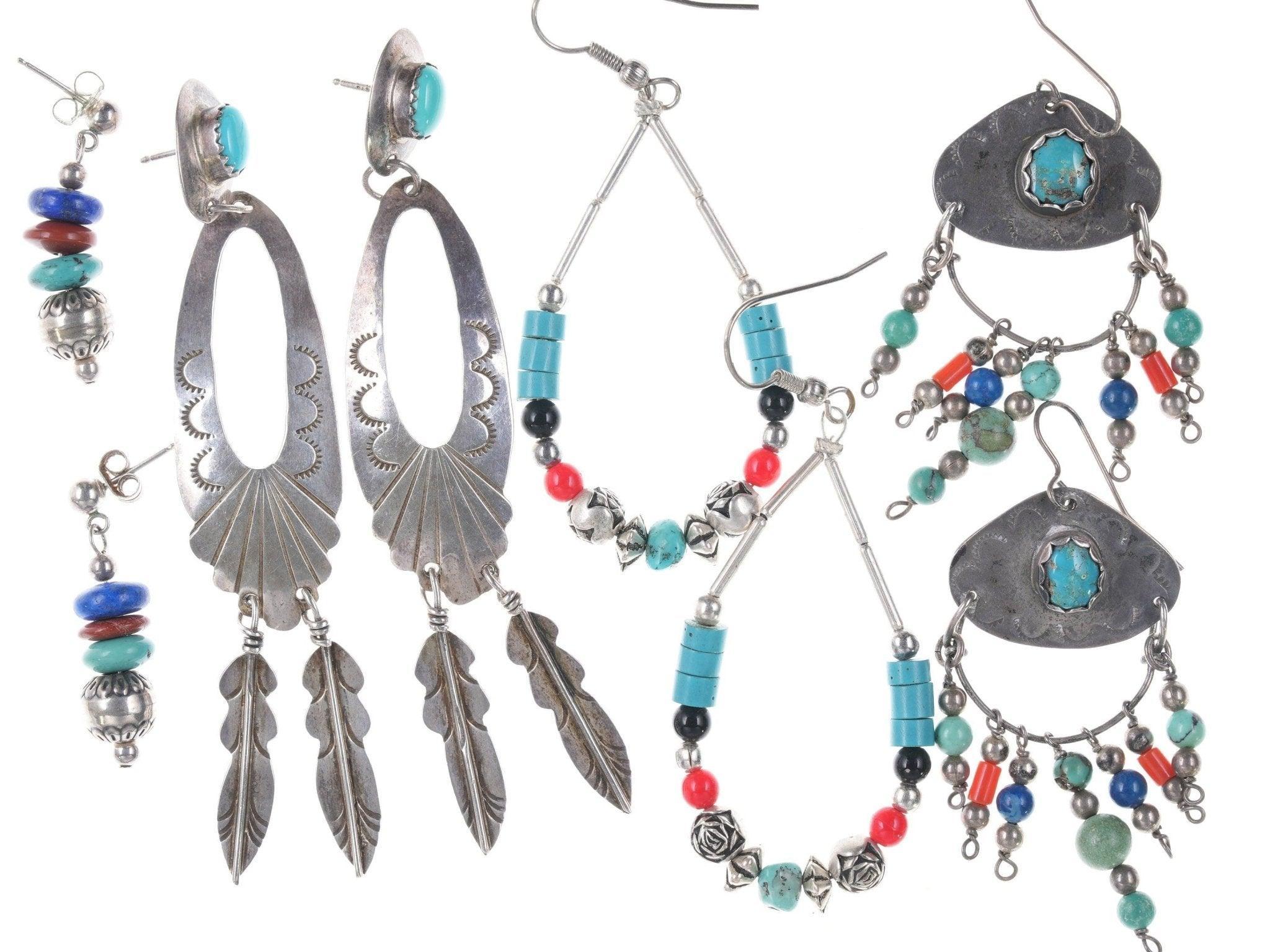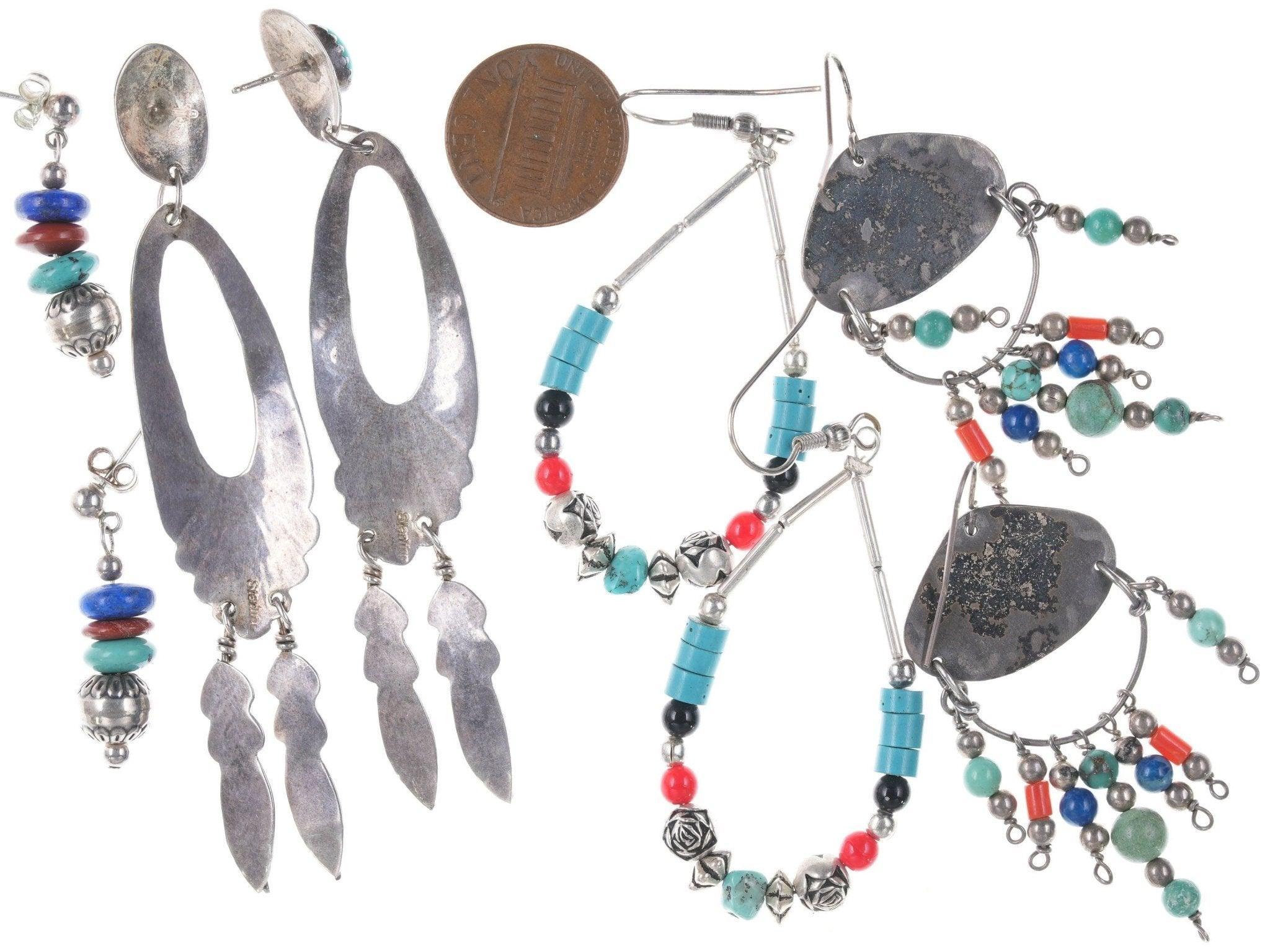4 Stück Sterling-Ohrringe im Vintage-Stil der amerikanischen Ureinwohner und des Südwestens