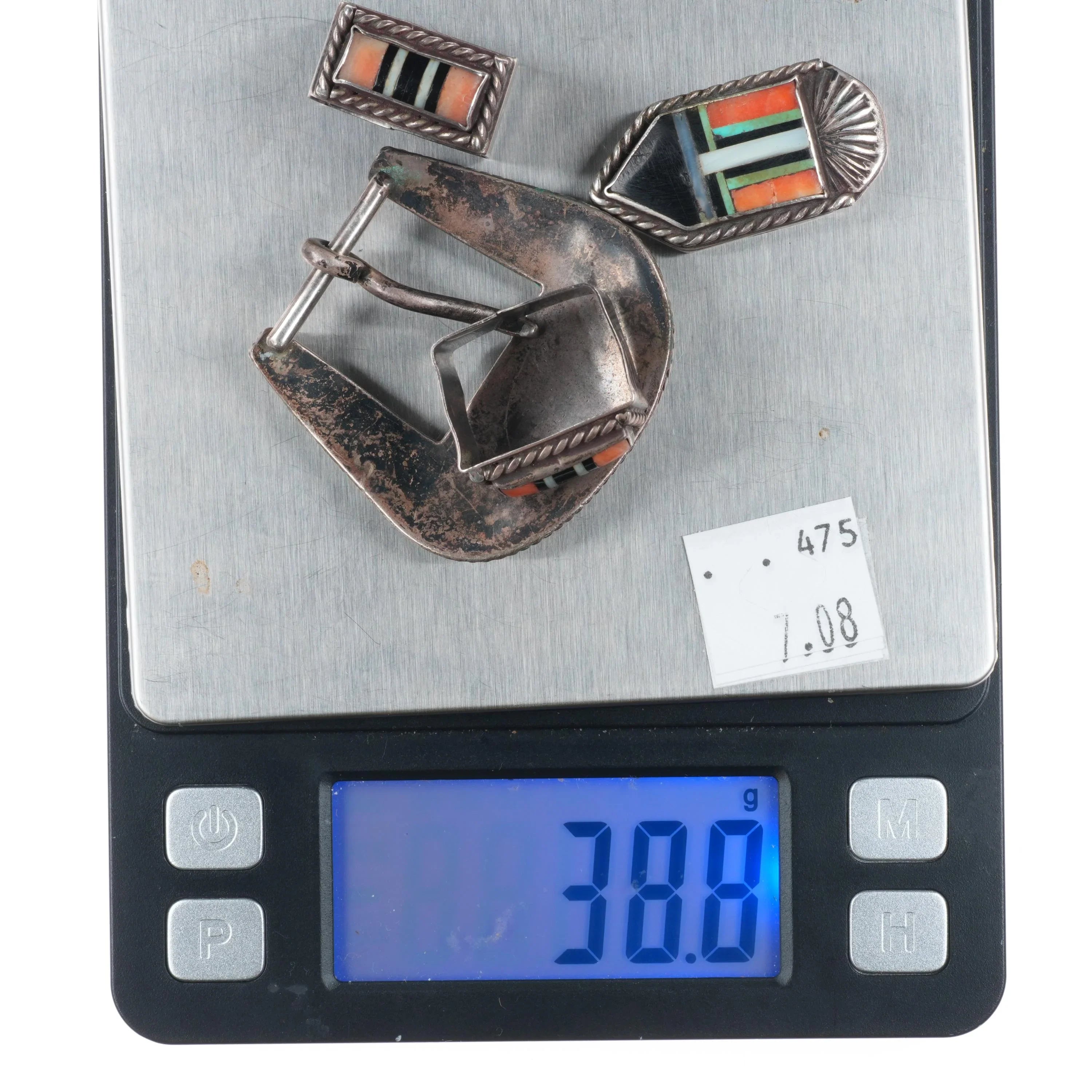 40's-50's Vintage Zuni sterling silver multi-stone inlay ranger belt buckle set