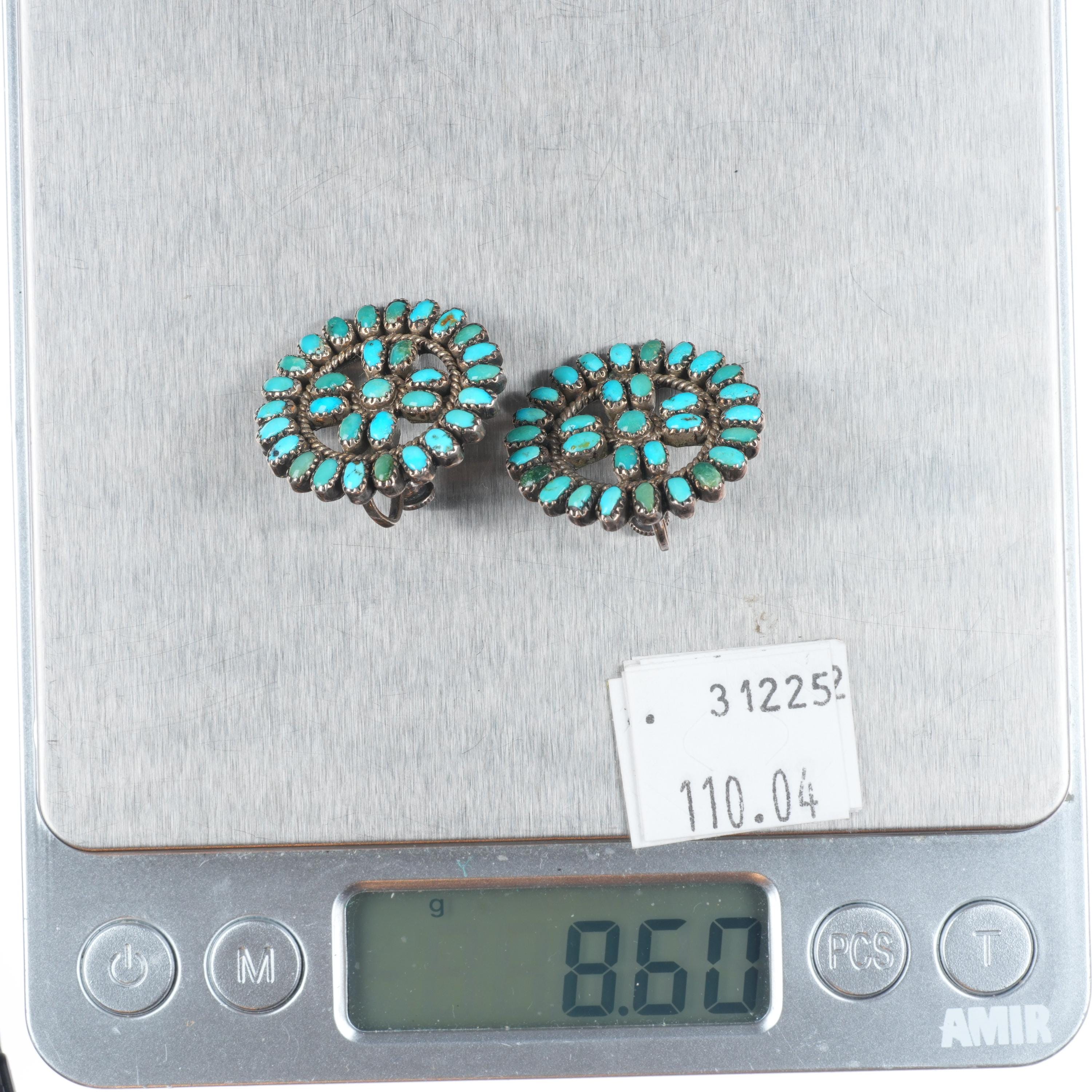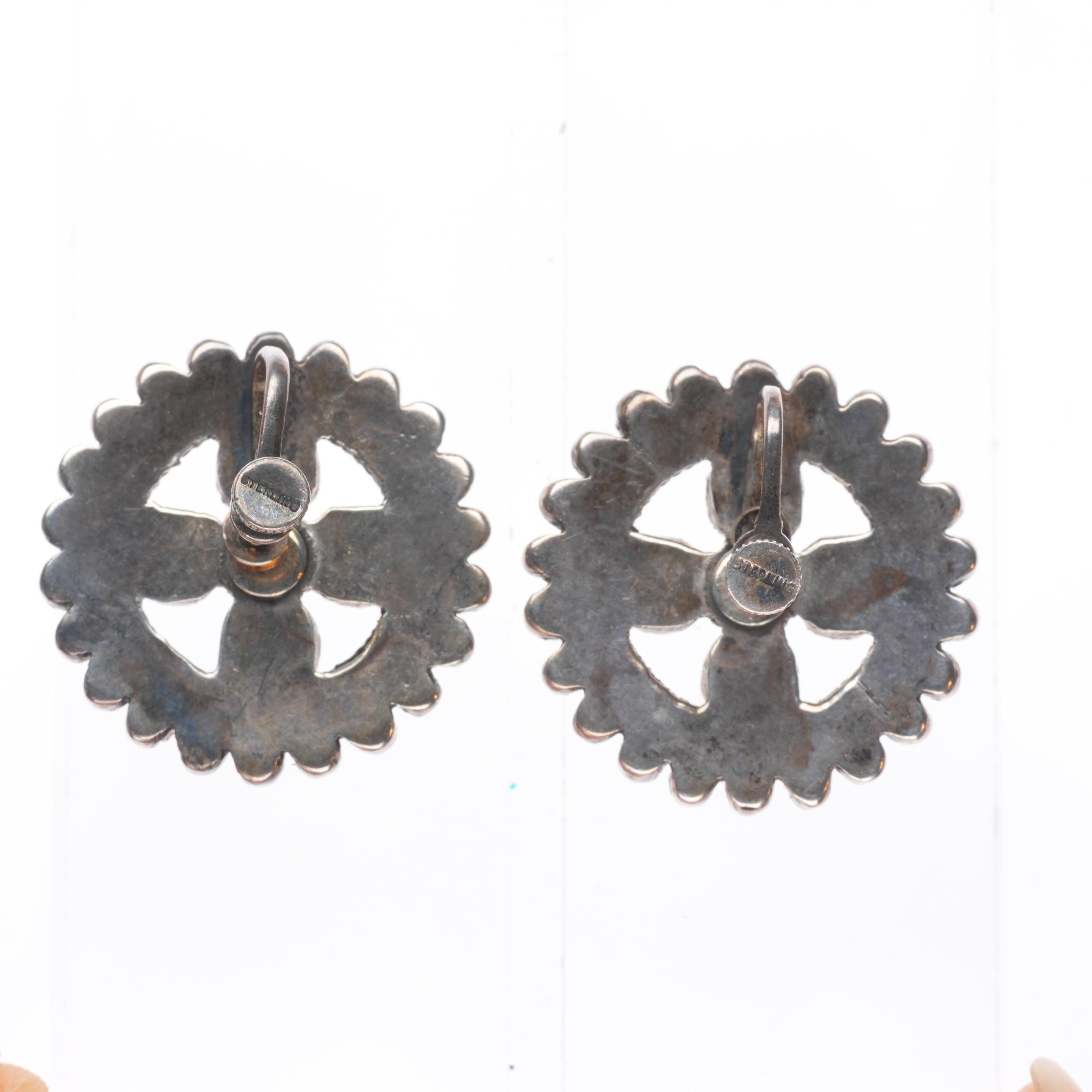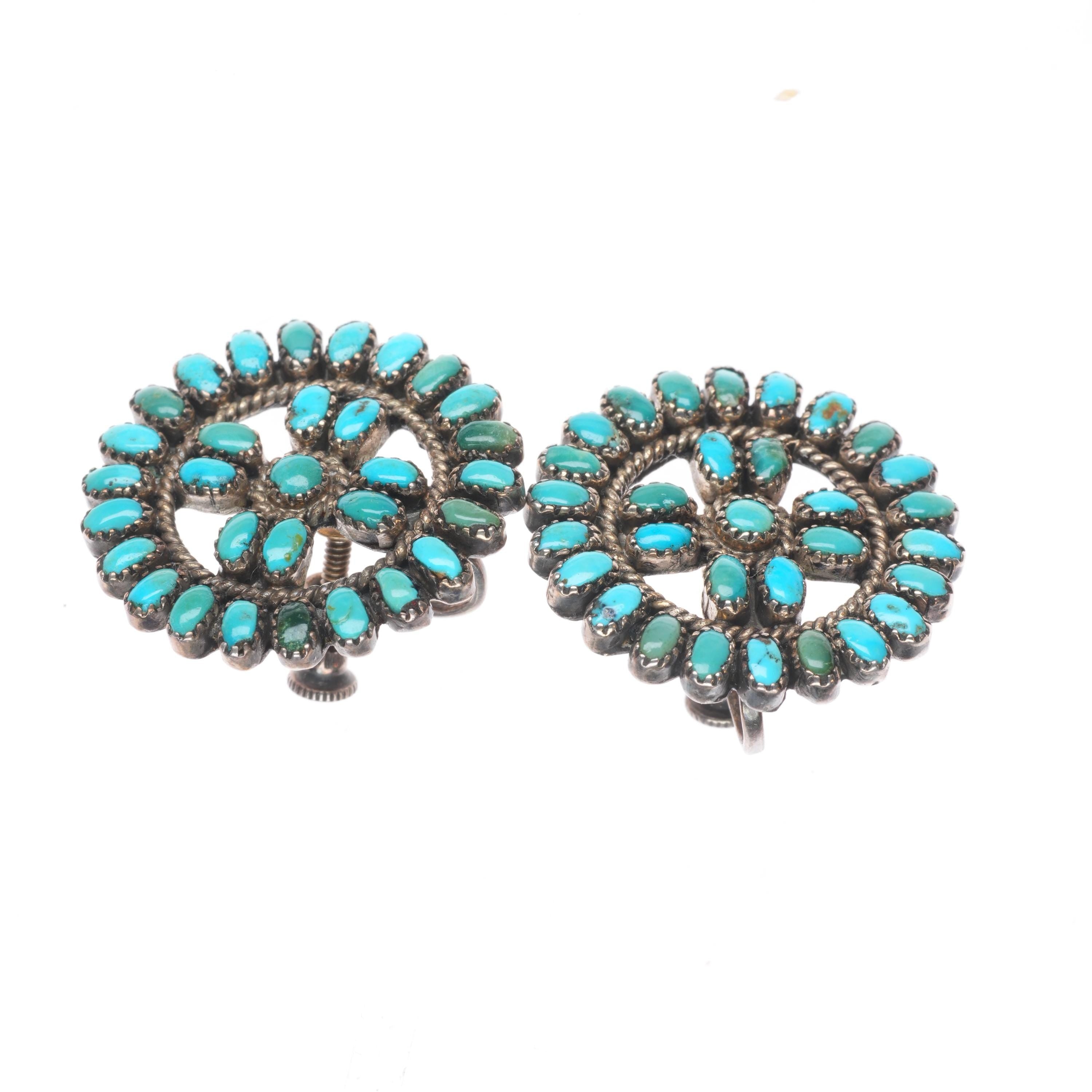 40's-50's Zuni petit point turquoise wagon wheel sterling silver screw earrings