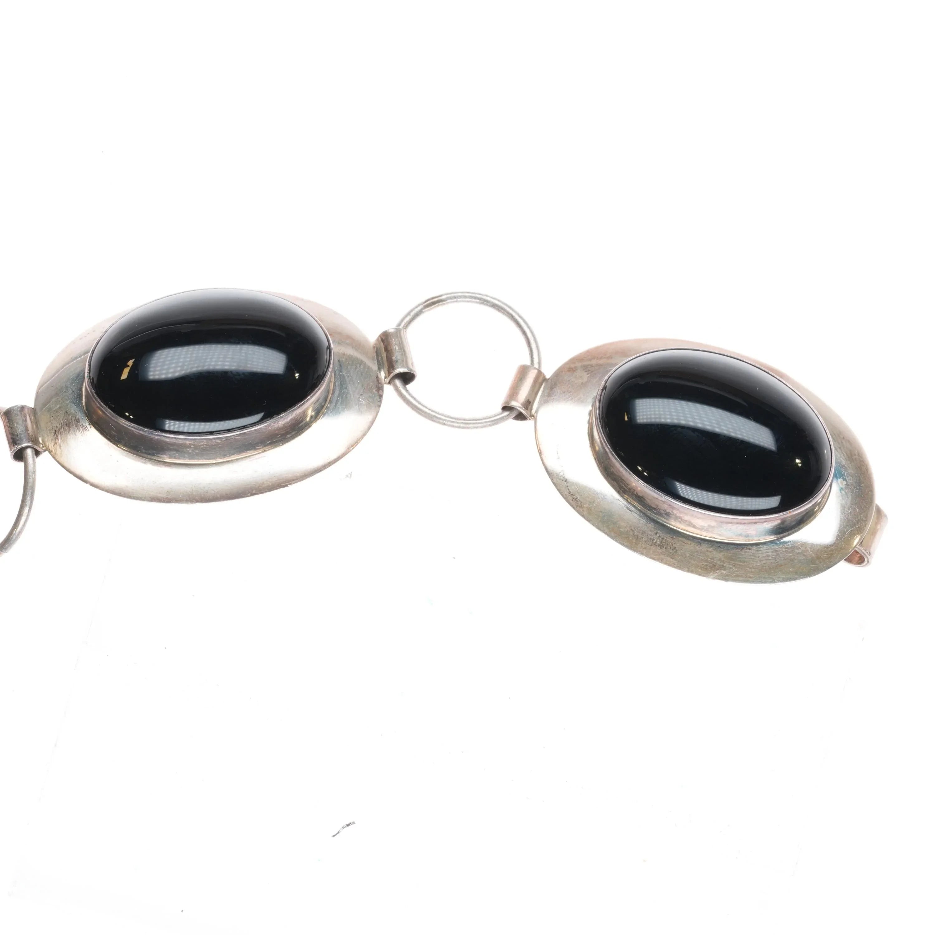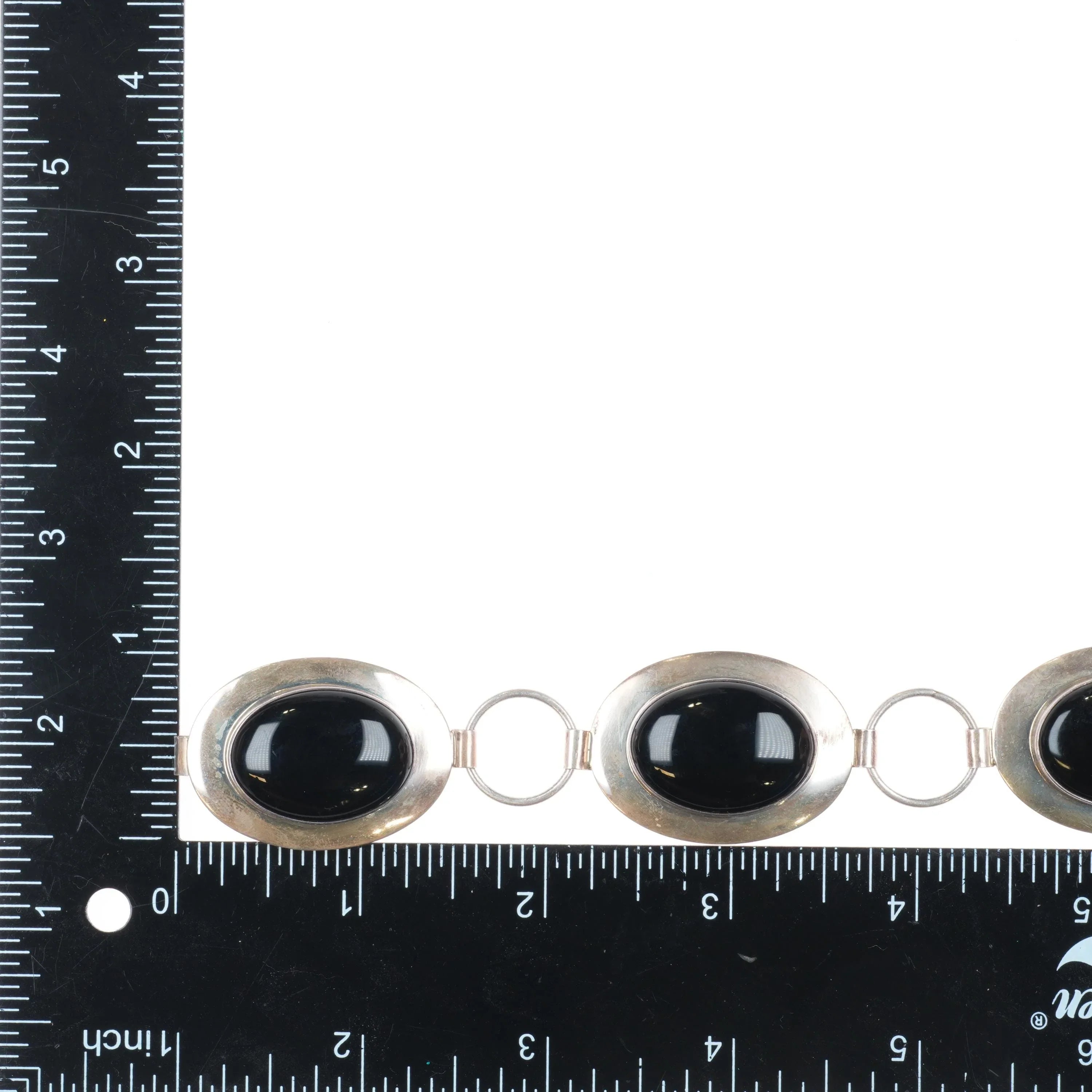 41" HM vintage Navajo sterling silver onxy link concho belt c1980‘s.. Tested and guaranteed solid sterling silver with weight and measurements in pictures. Fully functional with no issues. All items will likely have some expected wear, the older they are the more wear they should have. Circa 1980‘s. with no unsightly damage.