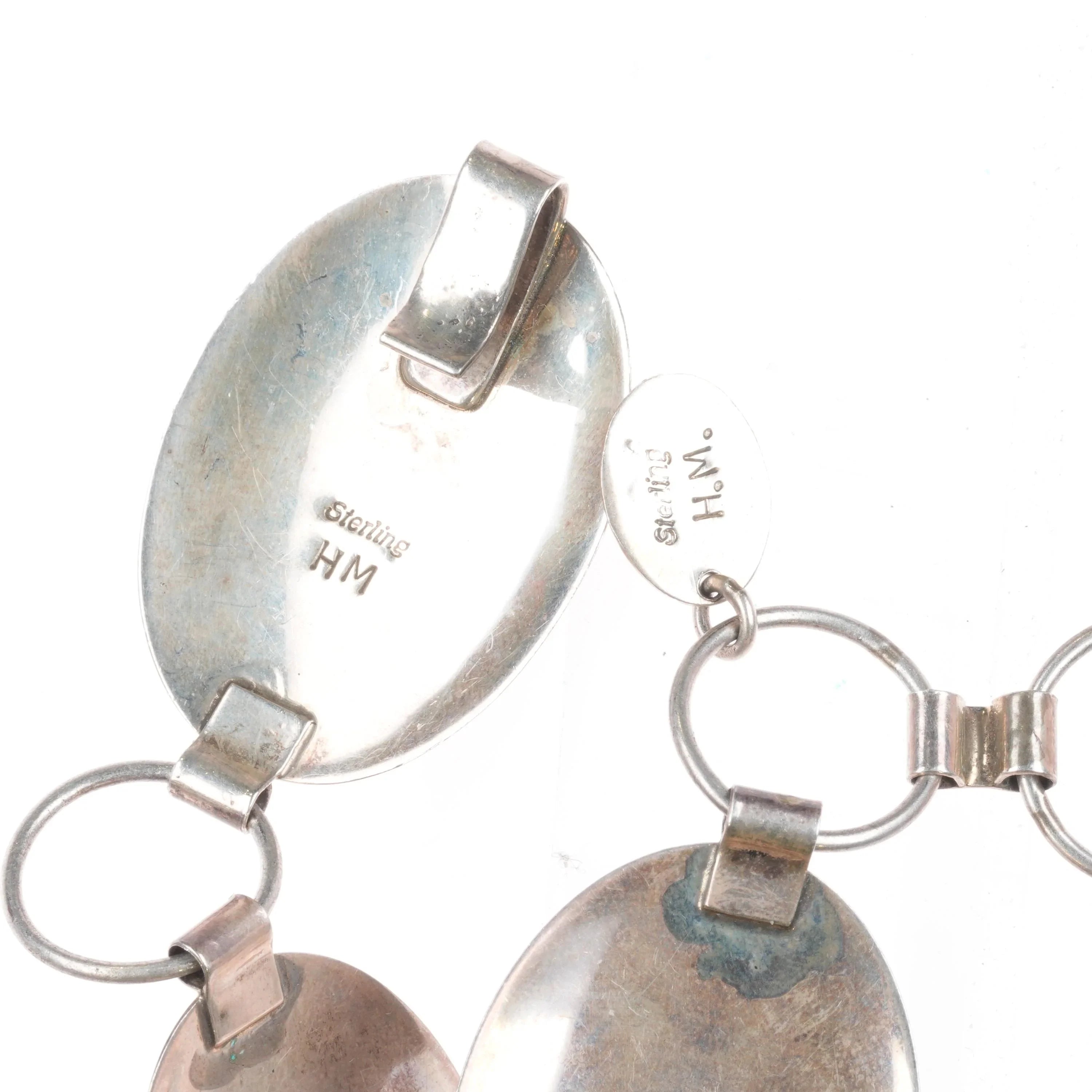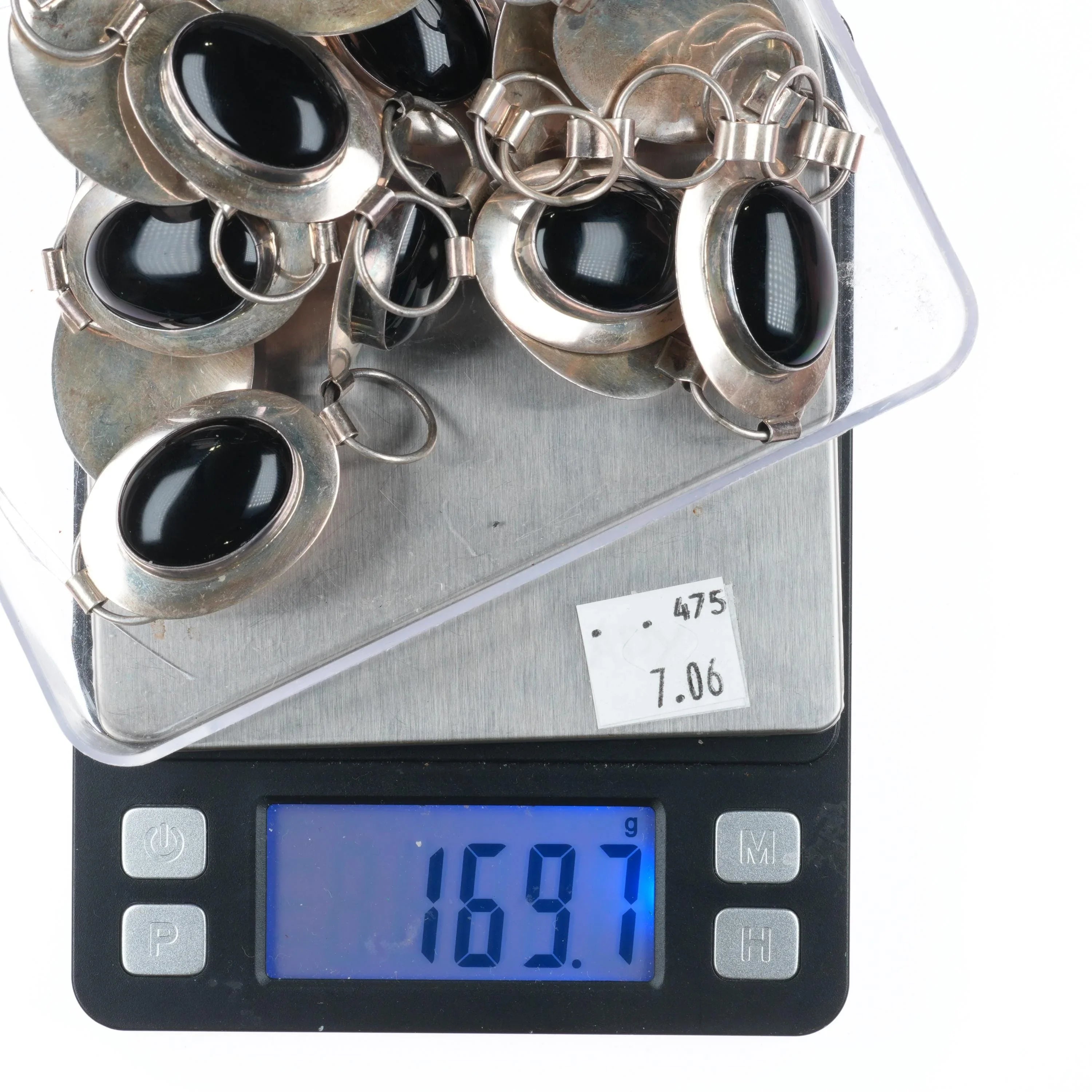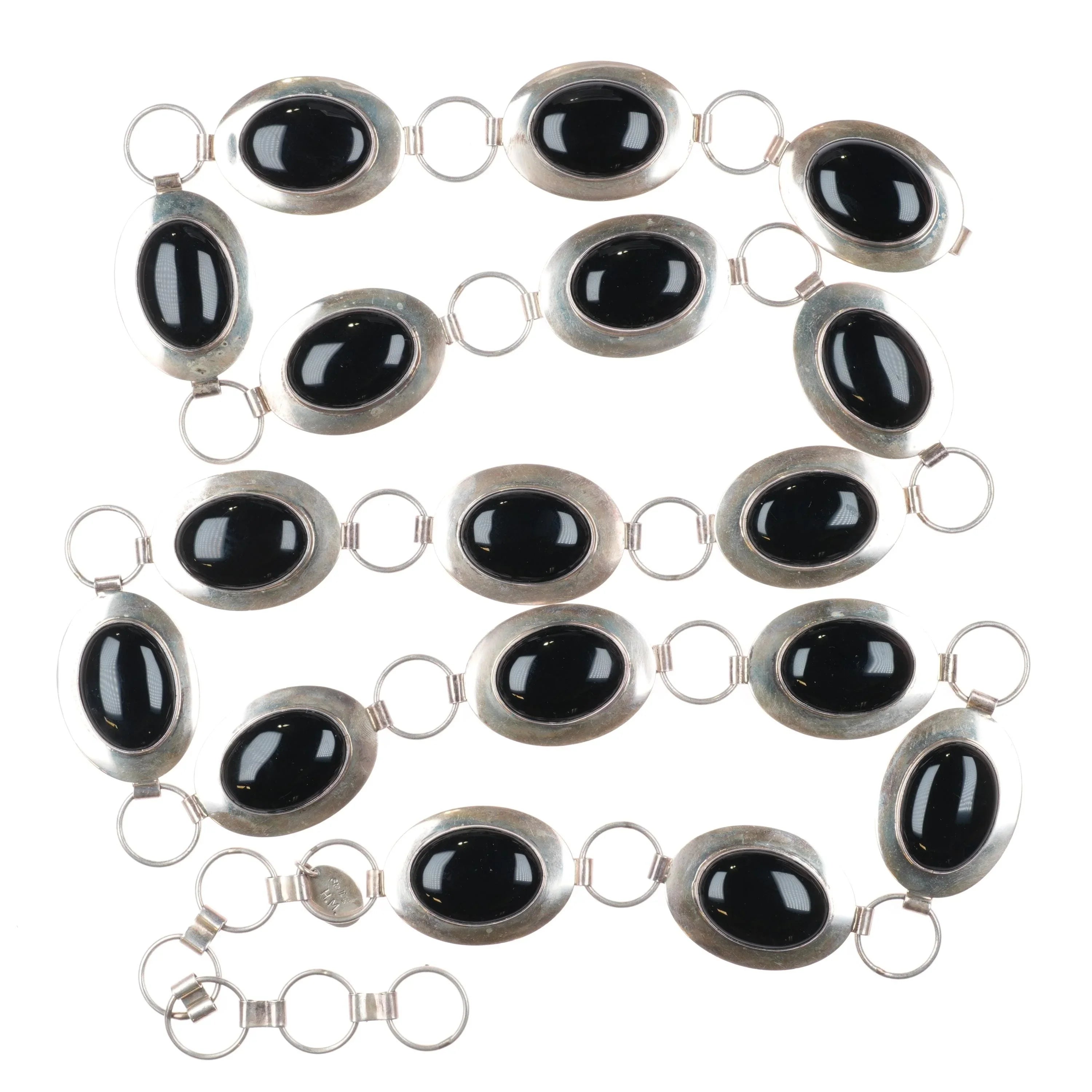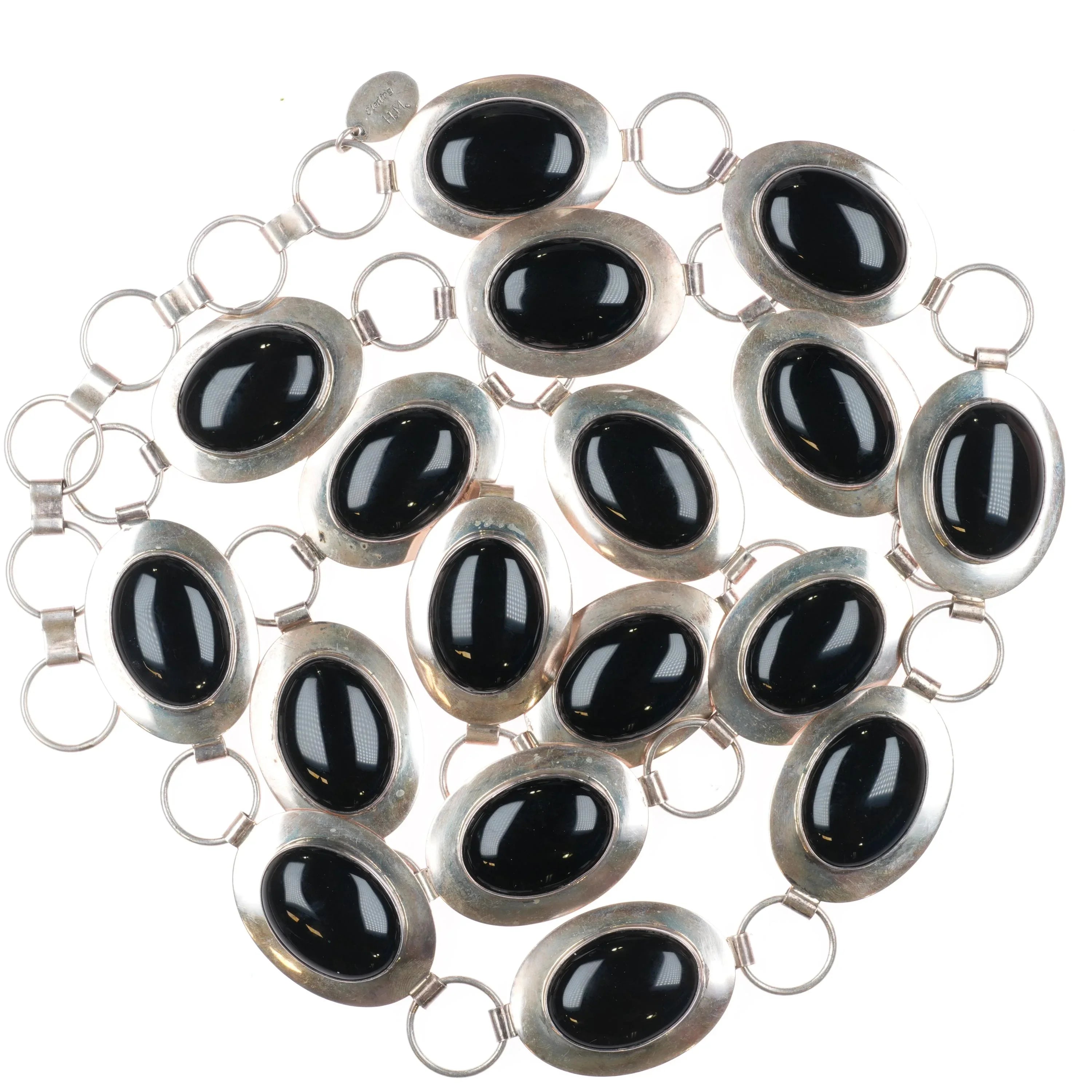 41" HM vintage Navajo sterling silver onxy link concho belt c1980's.