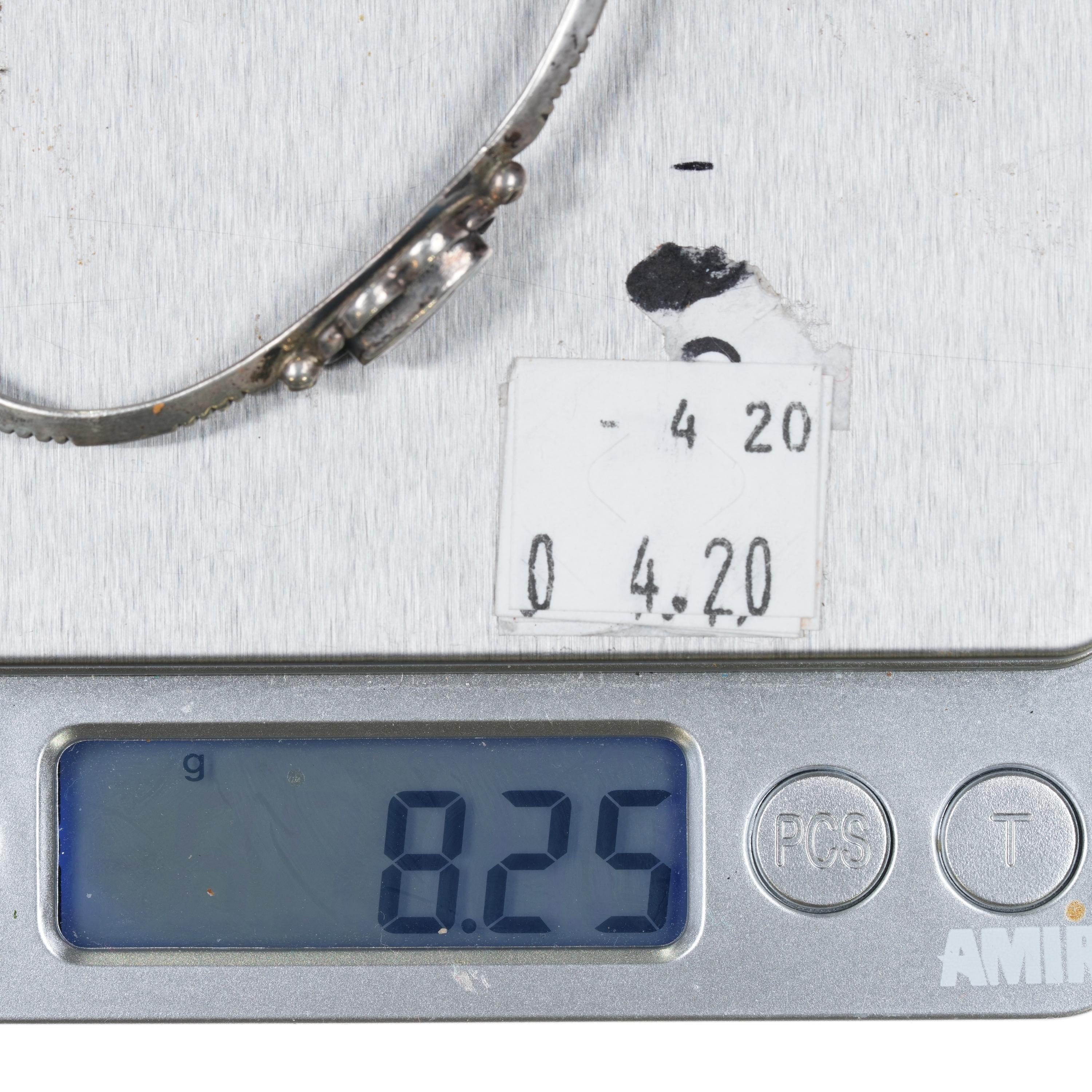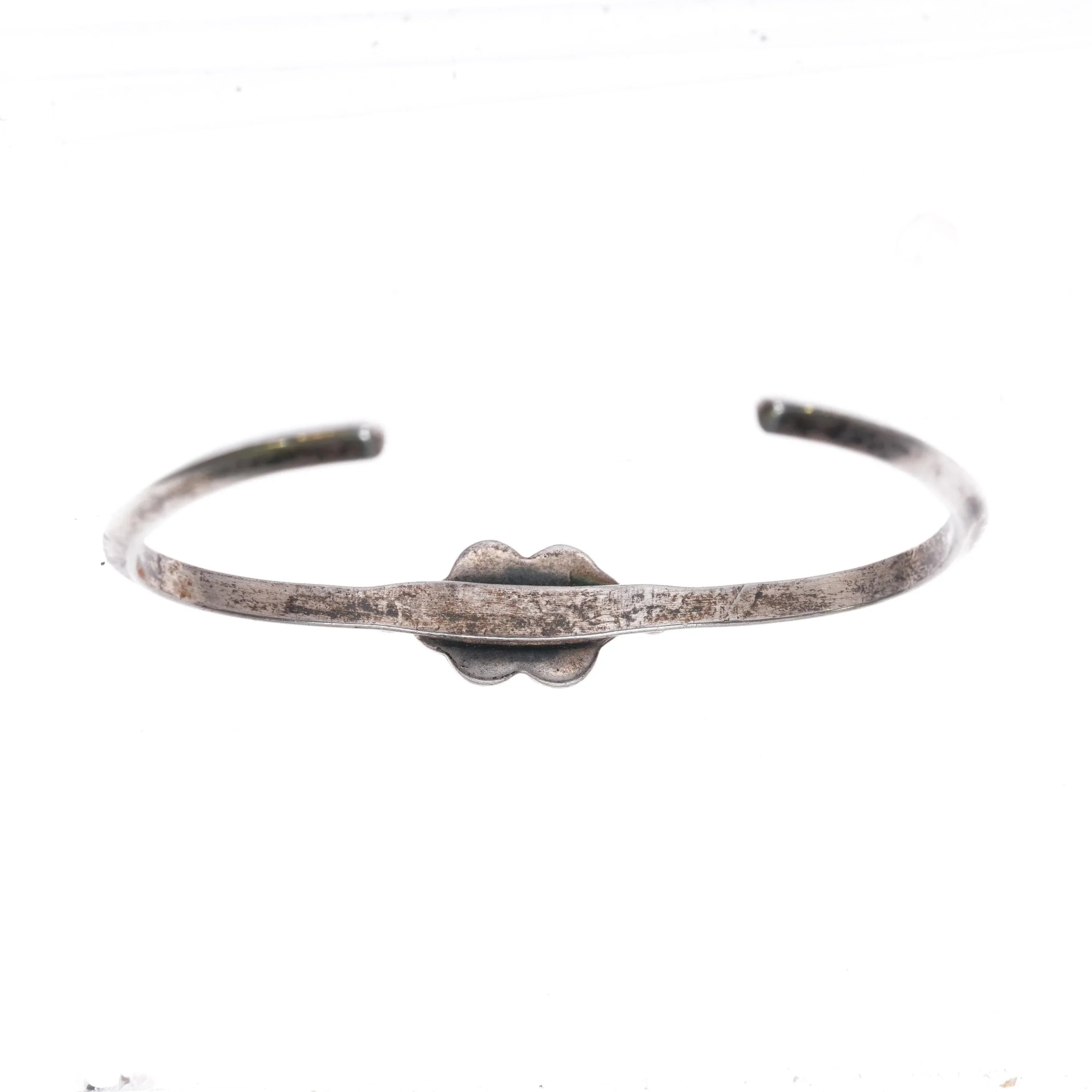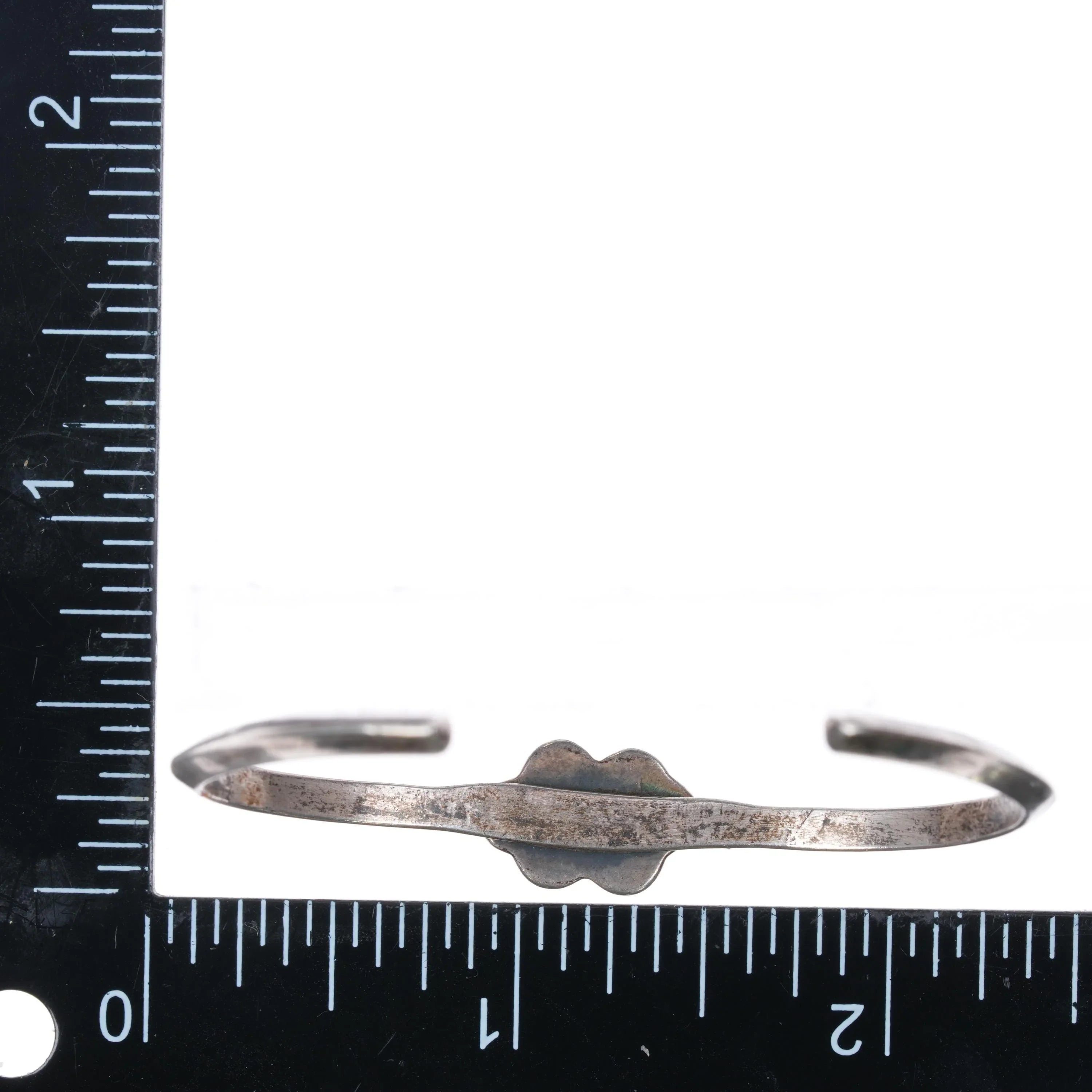 5.6" 1970‘s Navajo sterling silver chip inlay slim cuff bracelet. Weight and measurements in pictures, solid sterling silver with no hallmarks, circa third quarter of the 20th century.