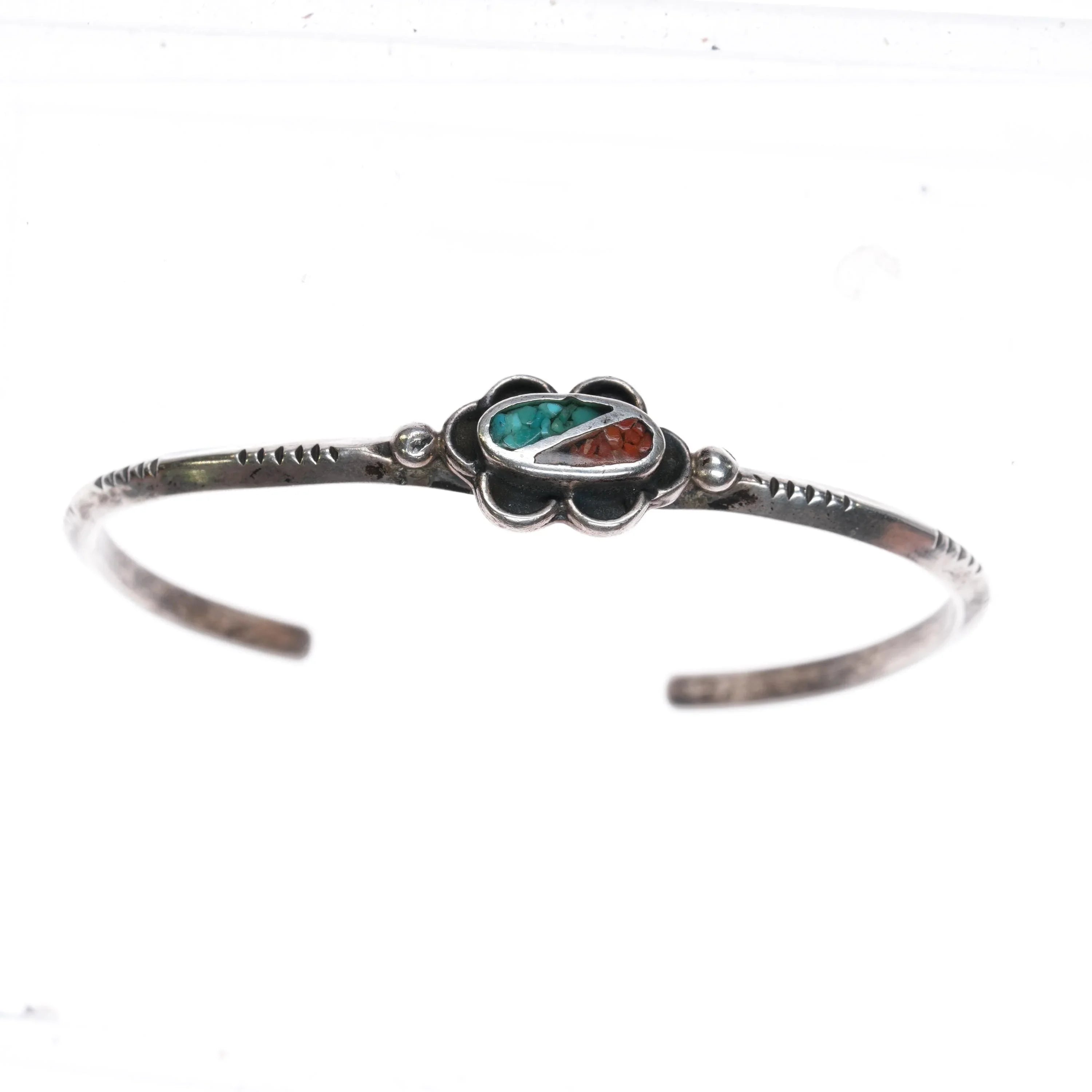 5.6" 1970's Navajo sterling silver chip inlay slim cuff bracelet