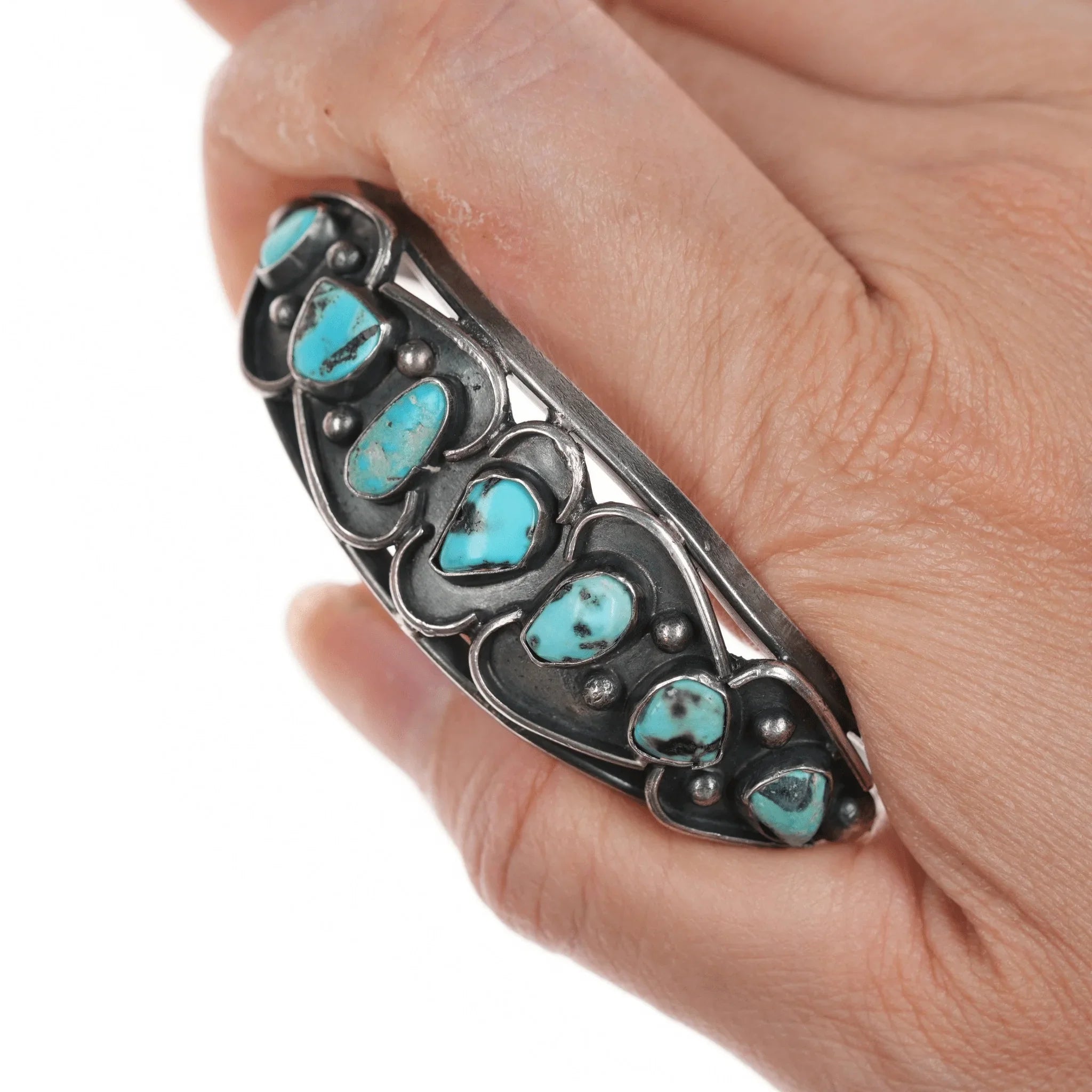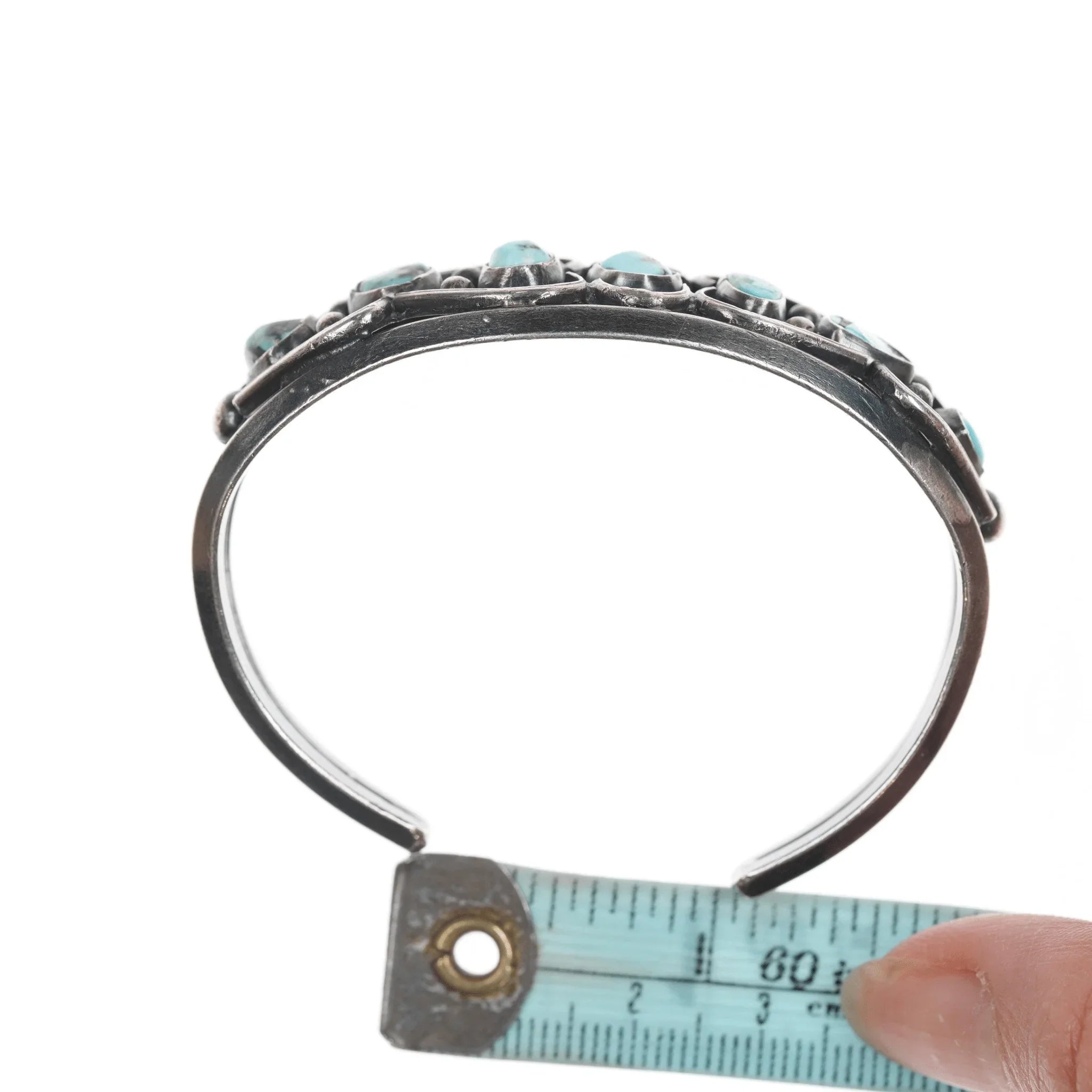 6 1/8" 50's-60's Native American silver turquoise row cuff bracelet