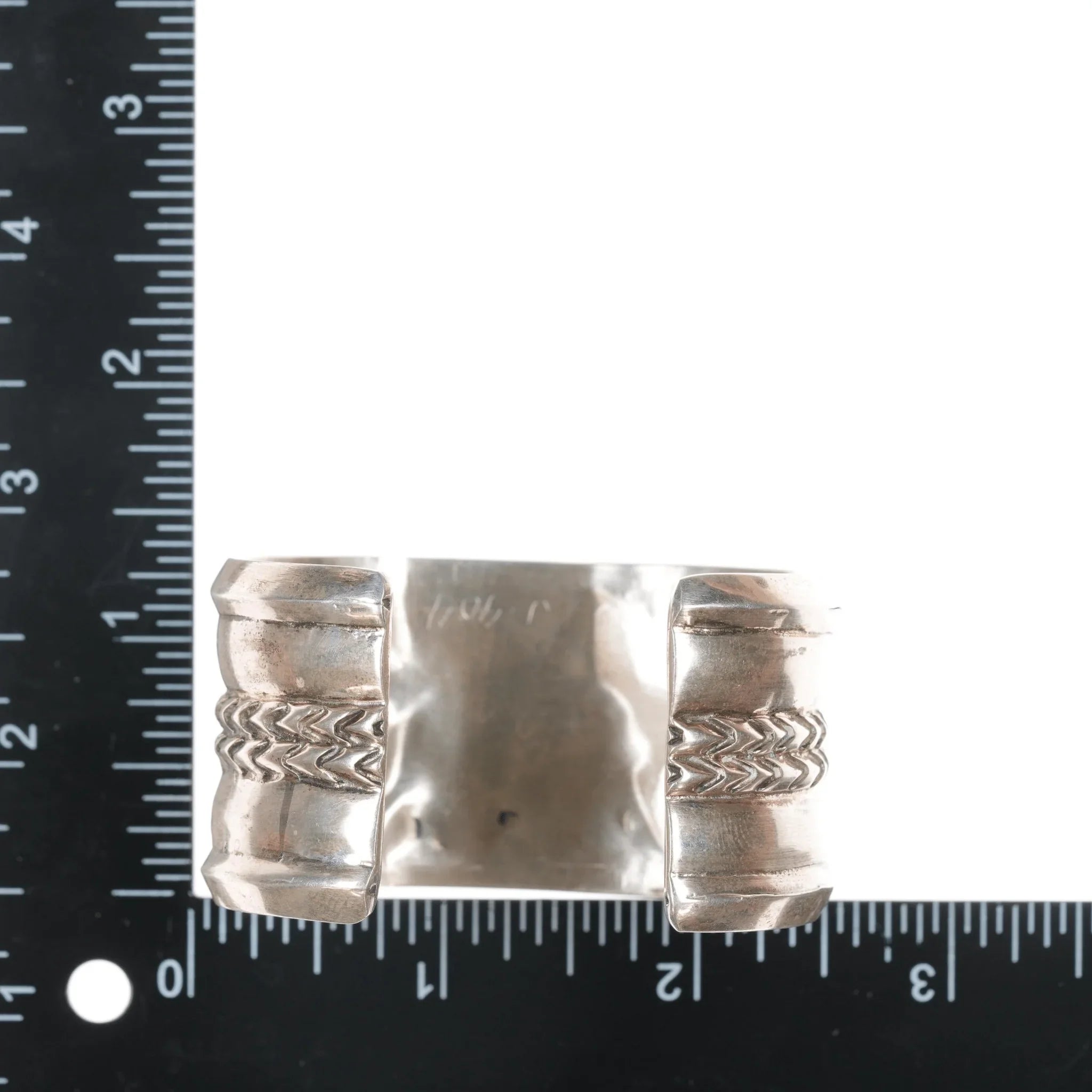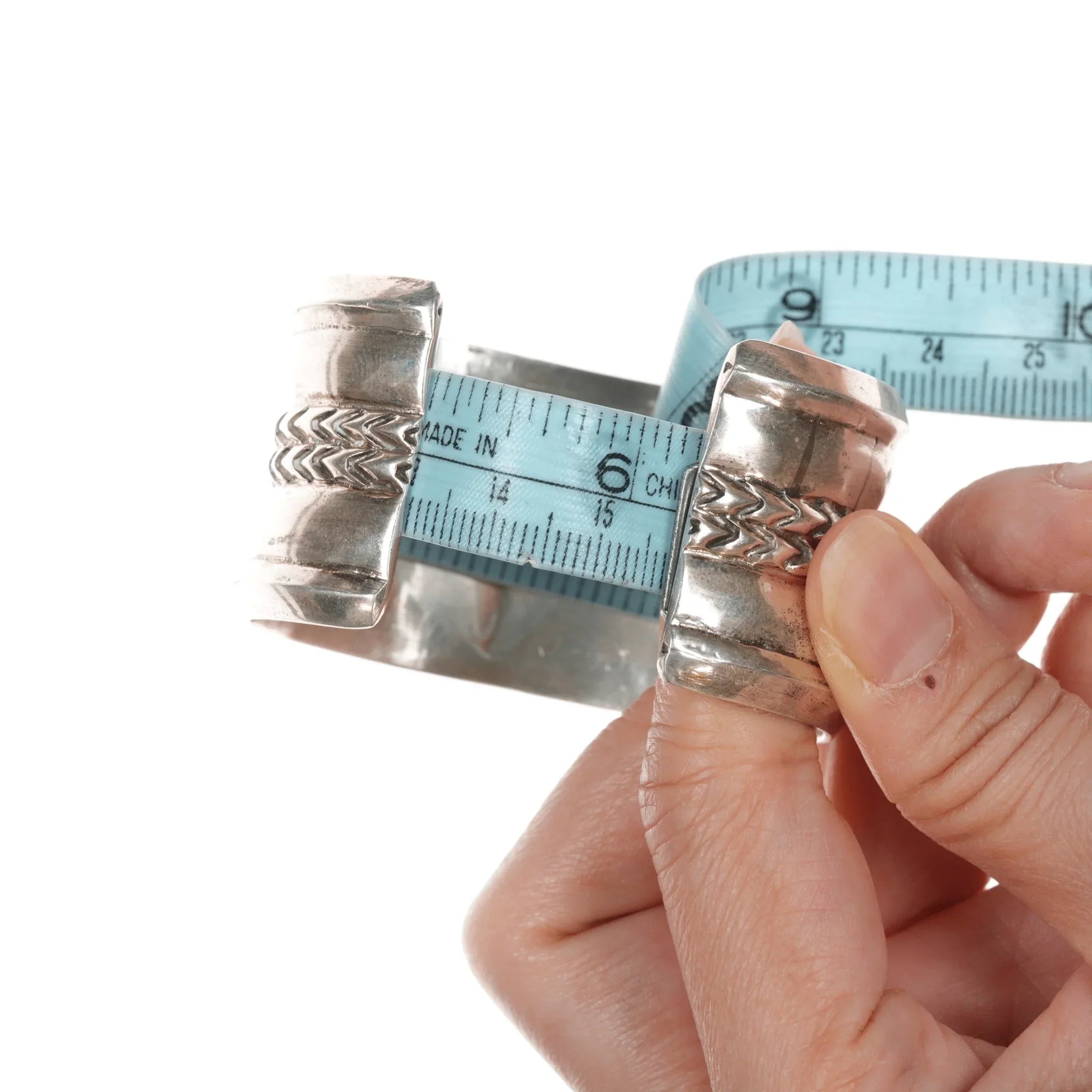 All precious metals are tested and guaranteed. A Native American jewelry piece referred to as "silver" or "ingot" is guaranteed to be at least 90% silver. I rarely use the word "sterling" when referring to older Native American silver or really any older silver jewelry as silver contents vary and "sterling" is 92.5% silver. No older jewelry is going to be exactly 92.5% silver, some a little over, some a little under. It wasn't an exact thing with handmade jewelry. I've seen thousands of pieces xrf'd to prove this. Bracelets are photographed on a 6" women's wrist.