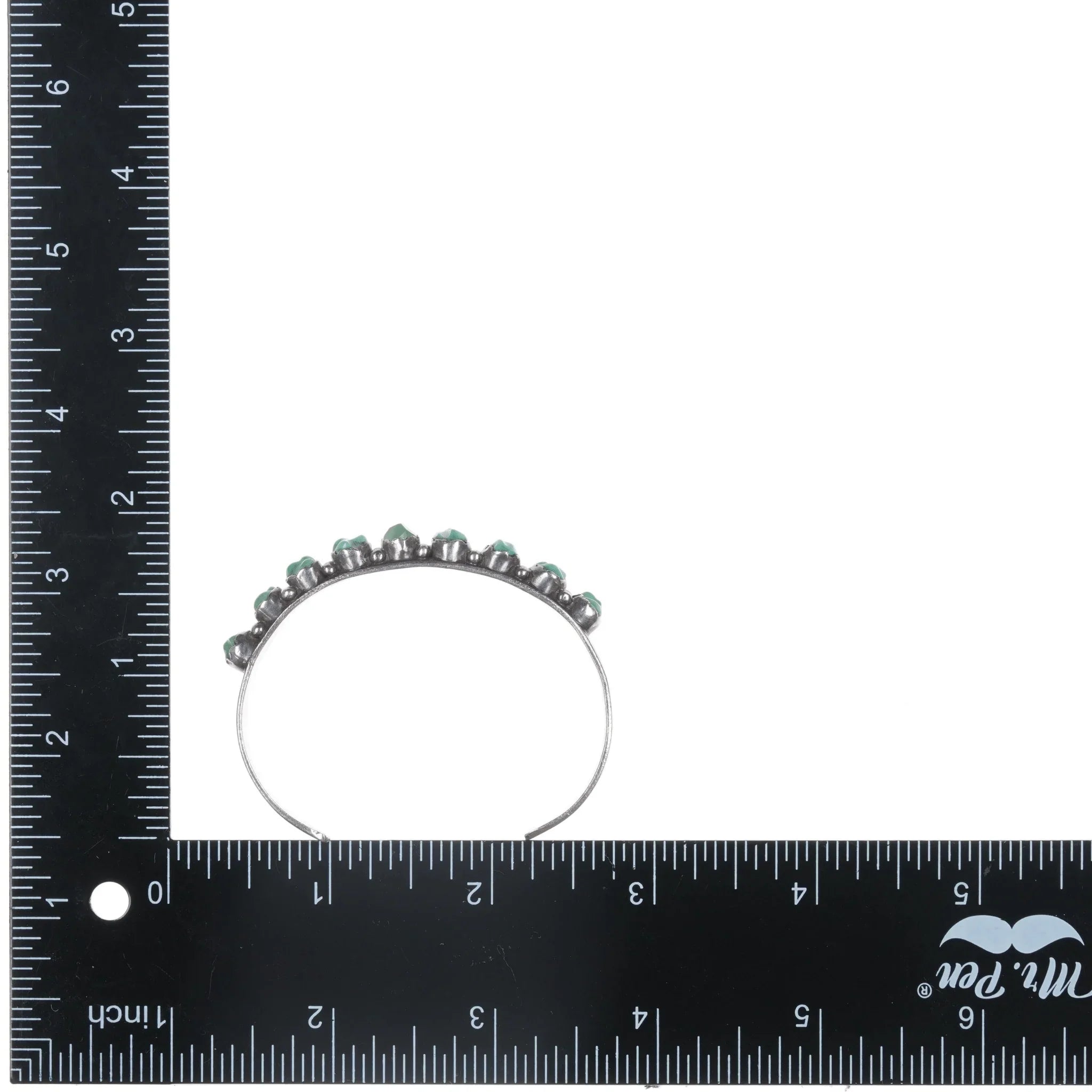 6 1/8" c1950's Zuni carved turquoise row cuff bracelet 5" plus 1 1/8" gap, sturdy but adjustable if necessary, unmarked.