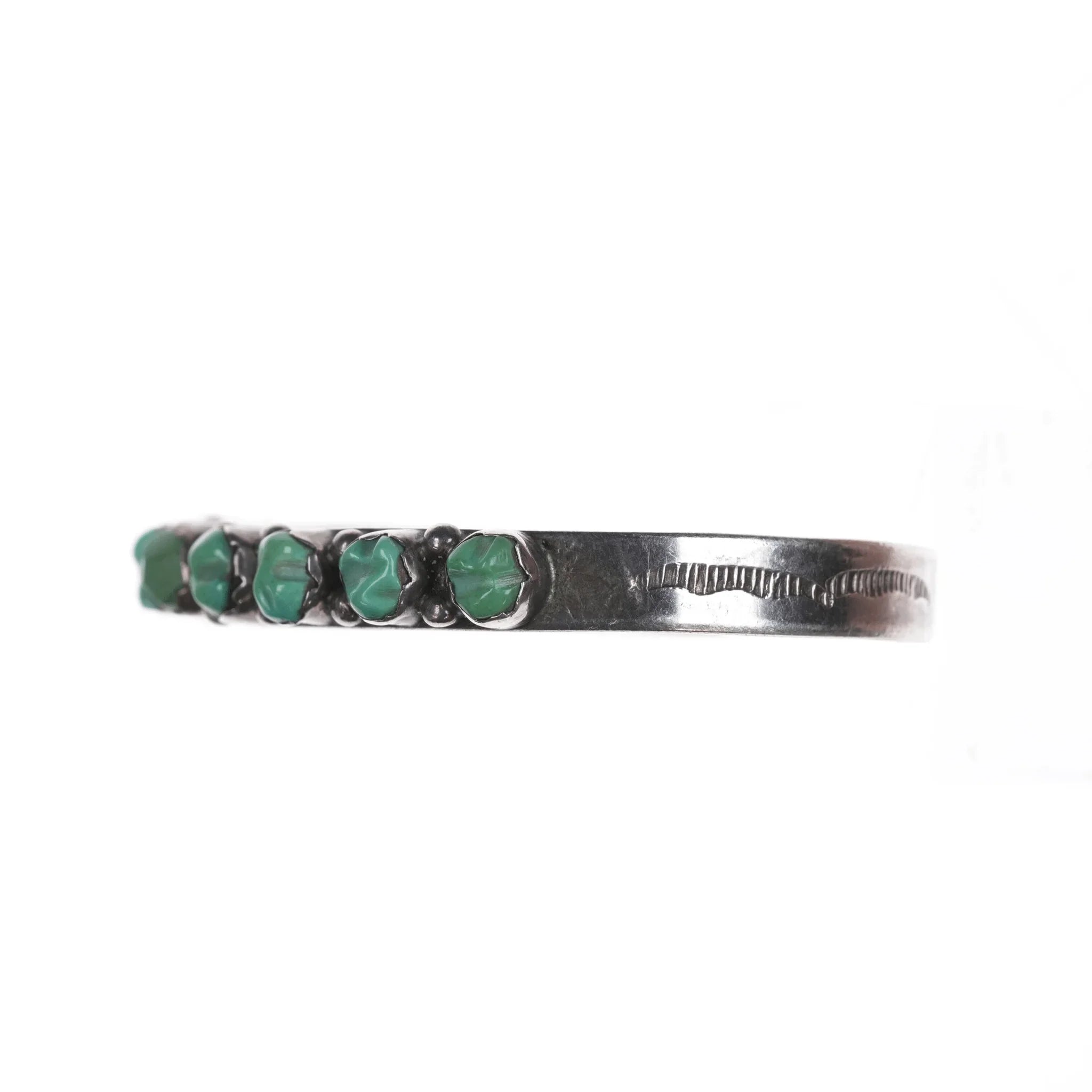 6.12" c1950's Zuni carved turquoise row cuff bracelet