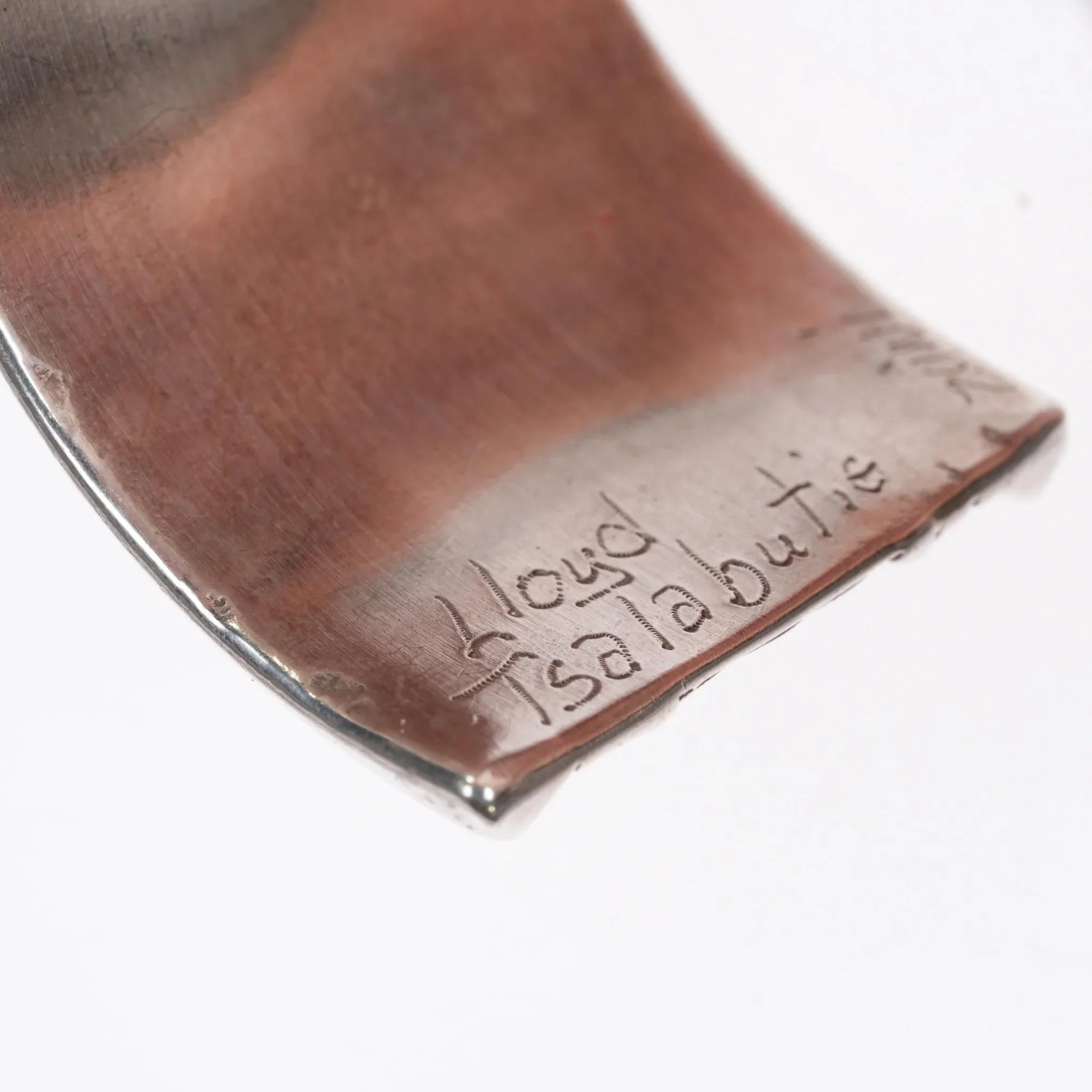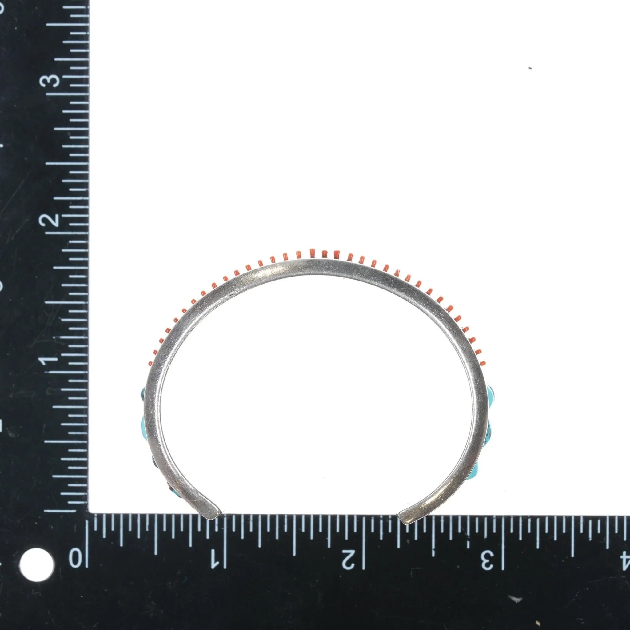 6.12" Lloyd Tsalabutie Zuni sterling coral needlepoint turquoise cuff bracelet