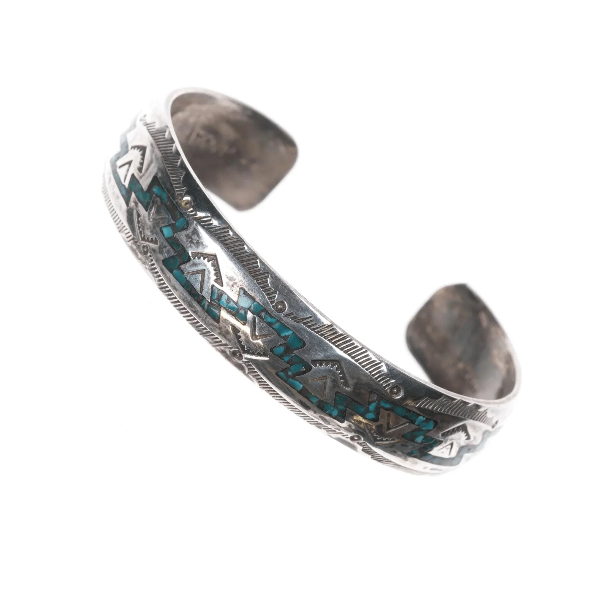 6.12" Nakai Vintage Navajo chip inlay sterling cuff bracelet