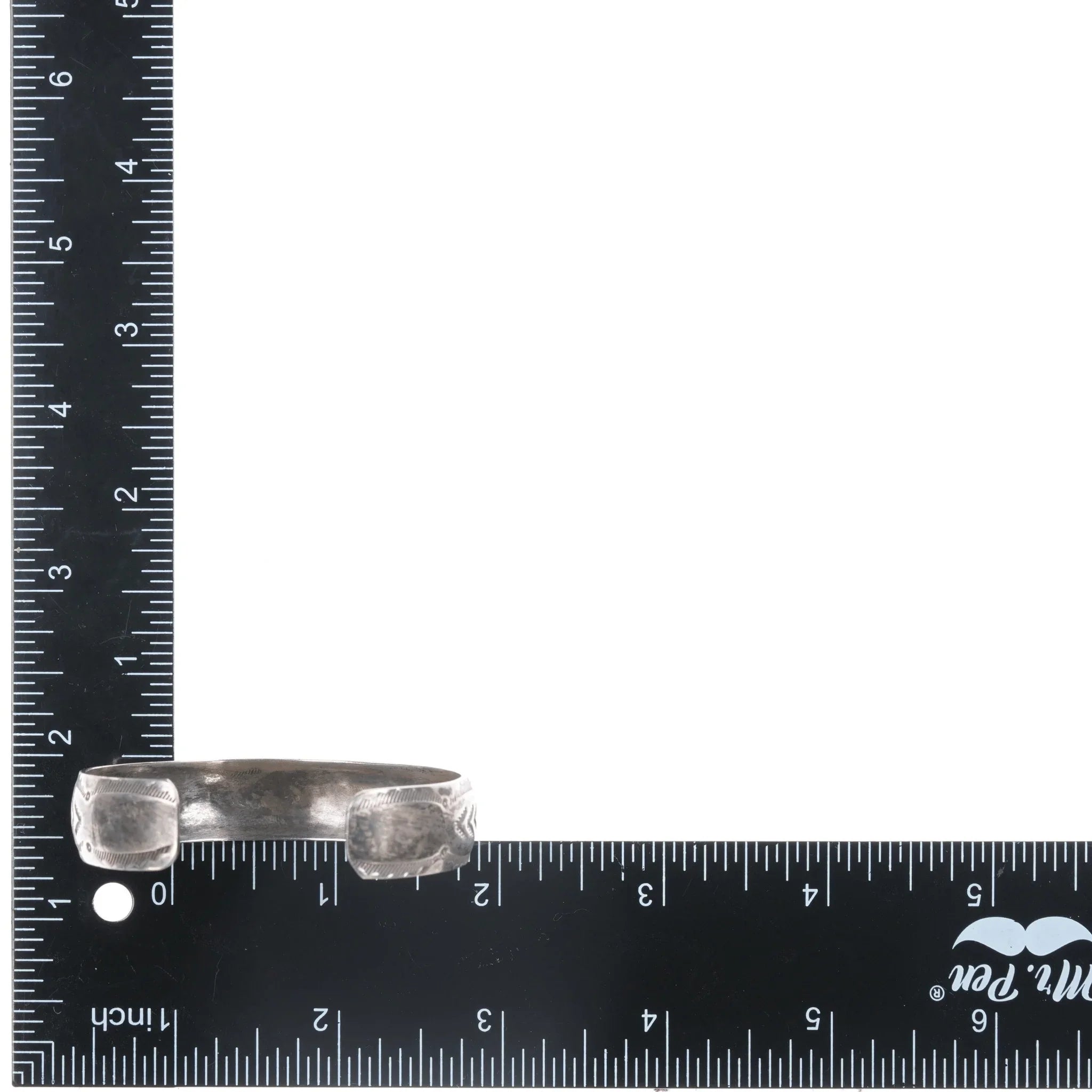 6 1/8" Nakai Vintage Navajo chip inlay sterling cuff bracelet. Very nice stampwork, no issues.